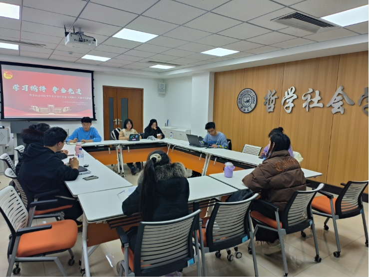 为深入学习贯彻习近平新时代中国特色社会主义思想,教育引导基层党组织和广大党员干部学习榜样、争当先进,主动作为、担当有为,12月21日,哲学社会学院组织广大师生党员、入党积极分子以及学院团学组织主要成员,通过线上线下相结合的方式收听收看由中央组织部、中央学习贯彻习近平新时代中国特色社会主义思想主题教育领导小组办公室和中央广播电视总台联合制作的《榜样8》专题节目,并开展感想交流活动。