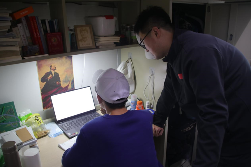 针对同学们寝室中存在的卫生问题,刘畅老师向同学们提出清理建议,提醒大家,整洁卫生的居住环境既有助于同学们的身体健康,也有助于心情愉悦,促进学习生活的进步;针对已经考完全部考试的高年级同学,刘老师亲切咨询了学生返乡时间以及假期规划。