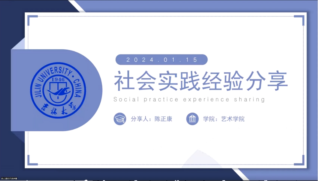 首先,艺术学院环境设计专业2021级本科生陈正康同学从前期准备,实践经历的分享,以及实践活动的感悟和方法总结四个方面分享了自身的社会实践经历。