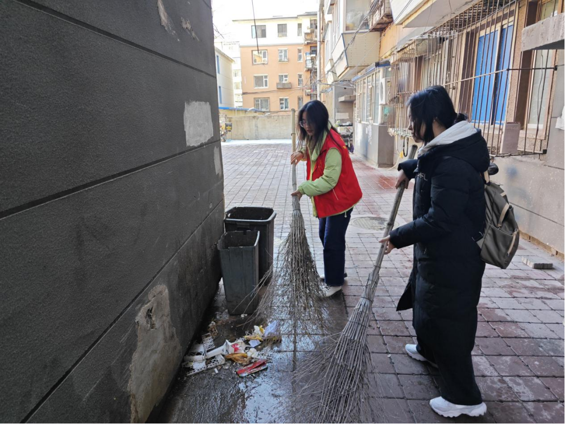 此外,志愿者们在社区工作人员的带领下对小区内部影响美观的枯枝落叶和垃圾进行打扫,走进居民楼对张贴物进行清理,在独居老人家中义务进行卫生维护。同学们的辛勤劳动获得了社区工作者、社区居民们的一致好评。这既是对我院开展的“学雷锋”志愿活动的认同,也是对我院青年学子们高度负责的志愿服务精神与劳动实践热情的积极赞扬。
