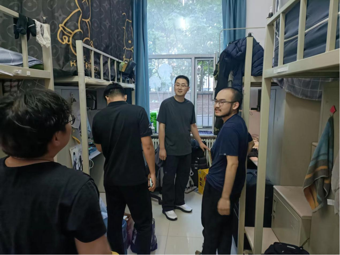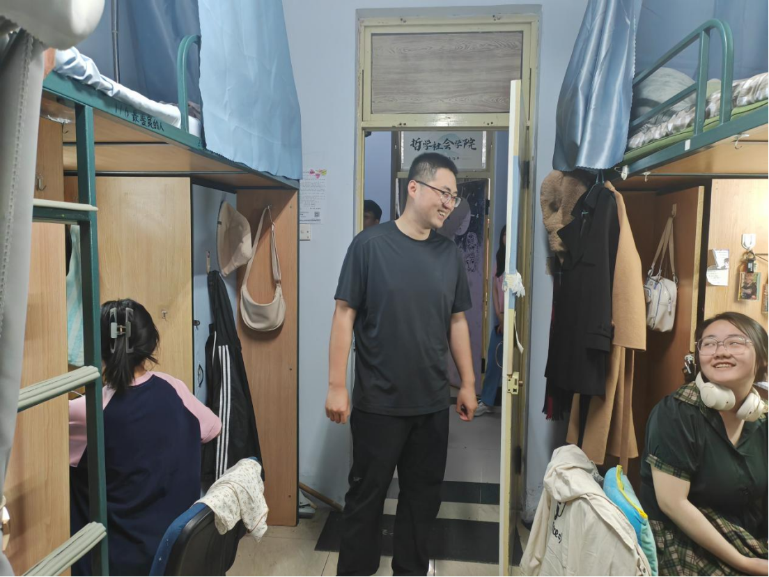 为引导学生强化安全意识,切实提升学生寝室消防安全,同时加强整体学风营造,进一步了解学生期末月备考情况,共同建设团结和谐、安全整洁的寝室环境和勤学严谨、诚信笃实的学习氛围,6月4日,由哲学社会学院党委副书记兼副院长刘培强老师组织统筹,学院团委书记刘畅老师、本科生辅导员宋绍伟老师以及学院学生组织的主要负责人同学们共同前往我院本科生寝室进行消防安全检查与学风走访督促活动。