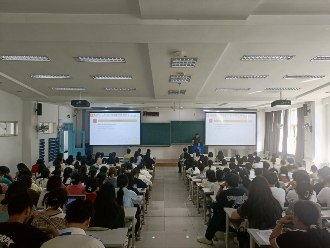 为深入学习贯彻党的二十届三中全会精神,坚守“为党育人、为国育才”初心使命,抓好新生入党启蒙教育关键期,引导同学们积极向党组织靠拢,8月27日下午,哲学社会学院在第三教学楼第七阶梯教室组织开展本科生入党启蒙教育,由学校党委组织部组织二科科长田轲老师主讲,我院团委书记刘畅老师主持,我院2024级全体本科生参加。