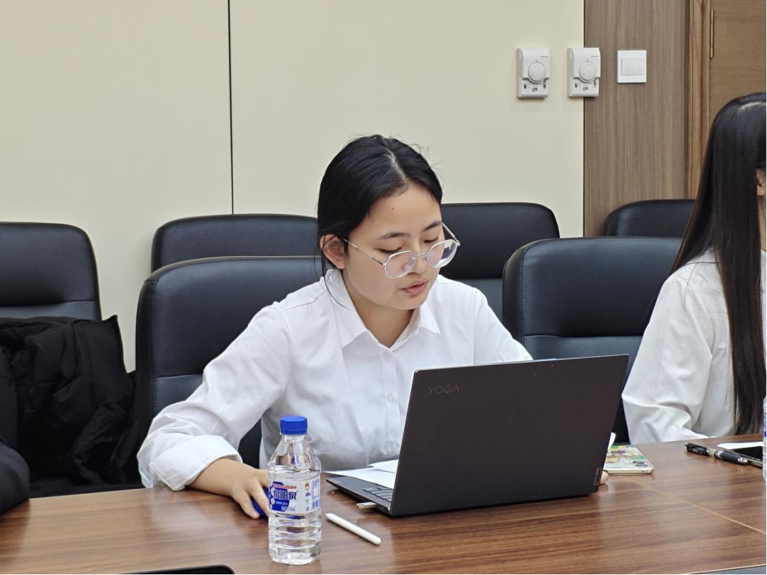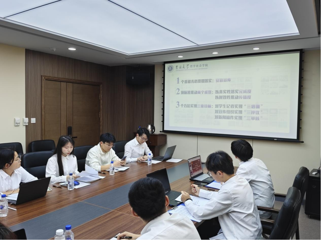 随后,我院学生会主要学生负责人王宇宁同学向大家介绍了哲学社会学院的团学工作基本情况,阐述了哲学社会学院团学工作“以大先生为引领,追求、传播和践行真善美”的理念与目标,并详细介绍了哲学社会学院充分运用团学工作“三大法宝”,推动团学新工作一体化,在组织建设、品牌打造、文体并重等方面团结引领团员青年掌握看家本领的各项举措与成效。