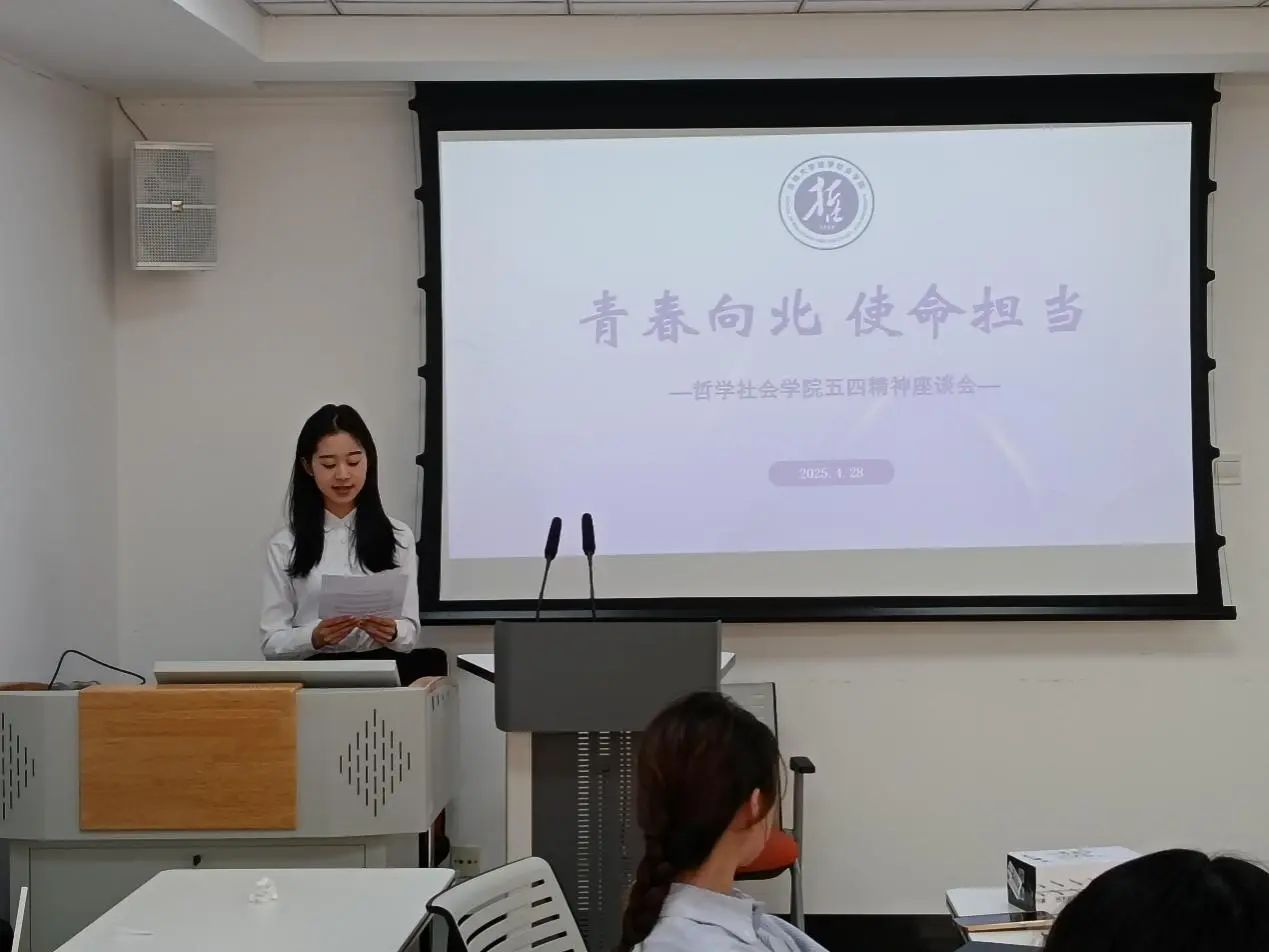 在五四青年节到来之际,为深入贯彻习近平新时代中国特色社会主义思想,引导青年学子牢记嘱托,感恩奋进,在新时代学习弘扬五四精神,哲学社会学院团委组织开展题为“青春向北,使命担当”的五四精神座谈会。本次活动由2024级本科生刘子灵主持,学院团委主要学生负责人、2024级各本科团支部干部和团员青年代表共同参与交流。