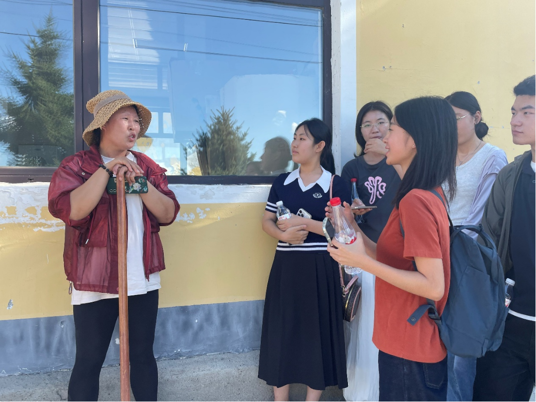 随后,实践团队对王家村志愿者展开访谈。扶余市精神文明志愿者协会王家分会会长杨丽娜向大家讲述了吉林省道德模范张利的事迹,展示了王家村浓厚的志愿服务文化底蕴,从村支部带头宣讲到村民自发参与志愿服务,王家村形成了共建共享的志愿服务格局,她强调,中华优秀传统文化的道德理念在基层志愿者服务中发挥了重要作用,在一次次志愿服务中,村民通过行善事,厚积德,服务他人,成长自我。