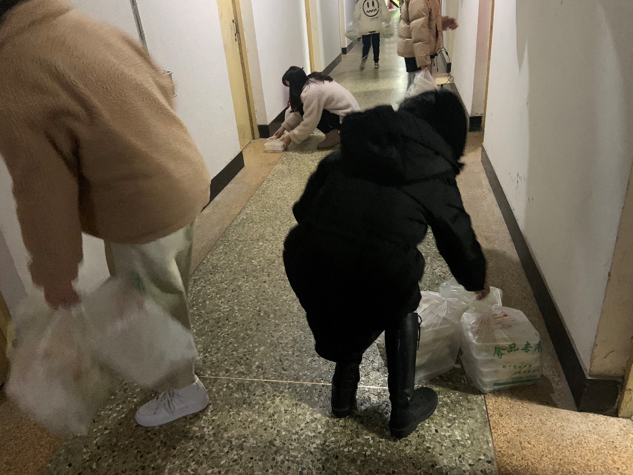 与此同时,由我院党员学生、各年级各班级主要学生干部和各学生组织同学组成的志愿者团队分别开展着志愿服务工作,他们中一部分参与到食堂的装餐送餐工作中,一部分参与到防疫物资分配工作中,还有一部分正蓄势待命,随时准备奔赴到需要他们的地方!