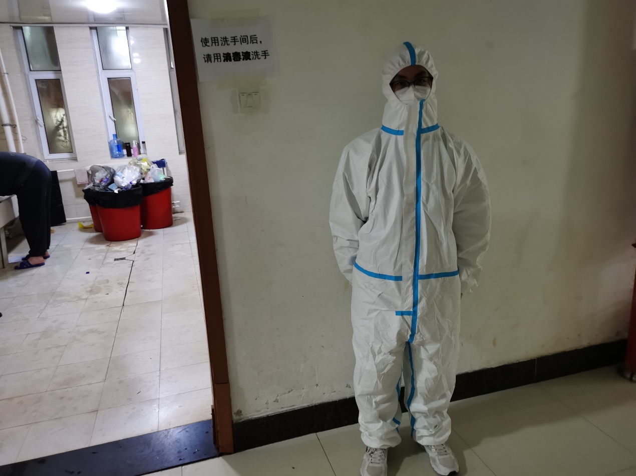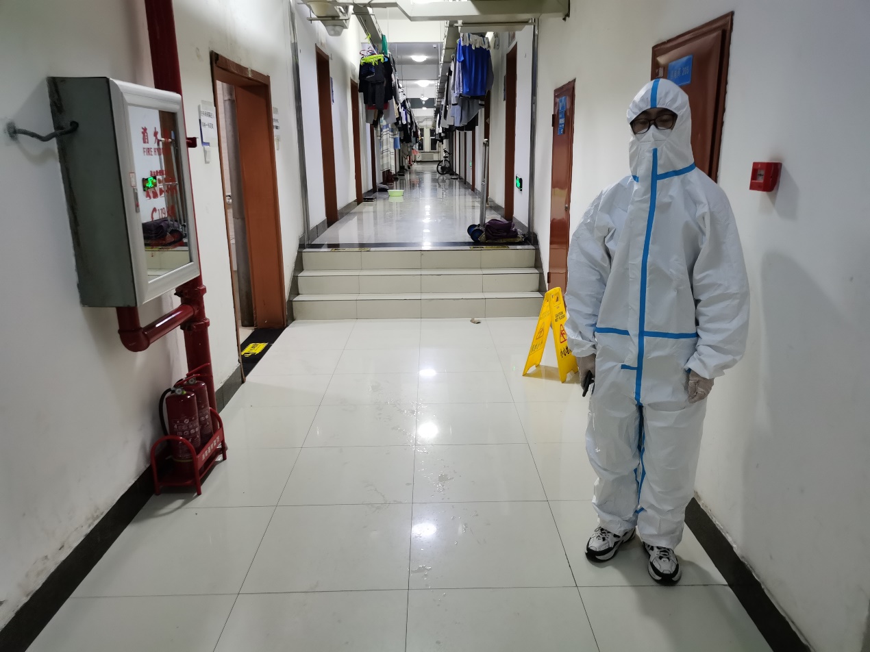 哲学社会学院的男同学们同样积极响应学校学院疫情防控政策,志愿者们每天的工作是引导疏散走廊人群,提醒同学们不要聚集,按照要求做好消毒防护工作。那一声声的殷切叮嘱:“同学快点走,不要在走廊逗留!”;一声声亲切关怀:“同学们,你们的饭来啦。”——传递着志愿者们心中的战“疫”必胜的决心,那一个个坚毅的背影无疑也成了这场战斗中最帅气的背影。