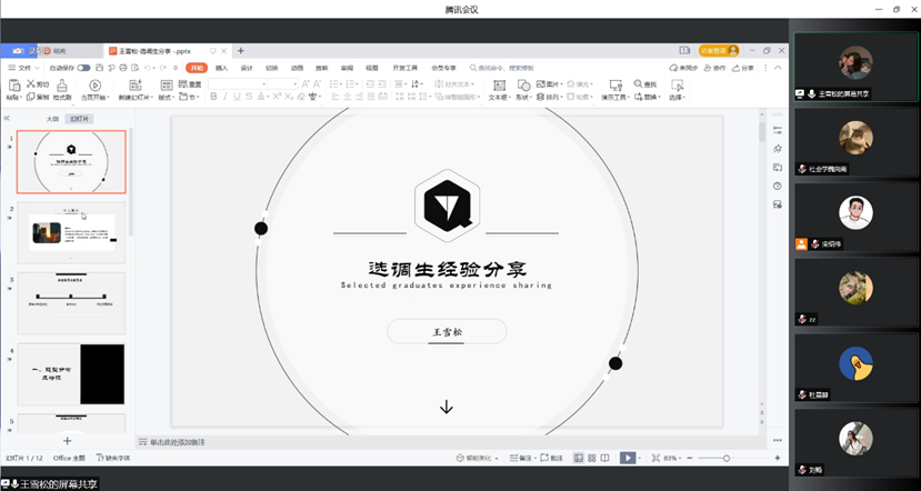 首先,杜晨赫师兄结合自身学习与工作经历为同学们介绍了中央选调生的相关信息。杜师兄于2018年通过中央选调生考试进入全国政协机关,先后在安徽省阜阳市颍东区乡村振兴局(原扶贫开发局)、颍东区插花镇杨桥居委会挂职工作,获阜阳市2020年最美扶贫干部、插花镇优秀共产党员荣誉称号。