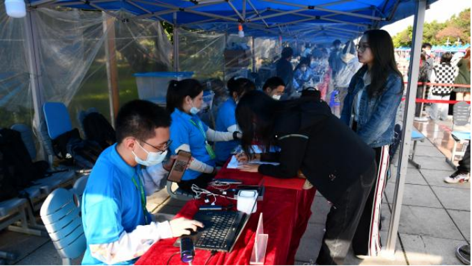 8月27日,清晨,所有工作人员准备好材料袋,调试仪器,早早抵达各自的岗位上。早七点,第一批新生入校,一天的忙碌,正式开始。