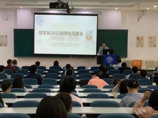 8月31日14:00,哲学系2022级本科生专业教育暨师生见面会于三教三阶举行,哲学社会学院哲学系各教研室主任与2022级哲学系全体新生出席了本次会议。