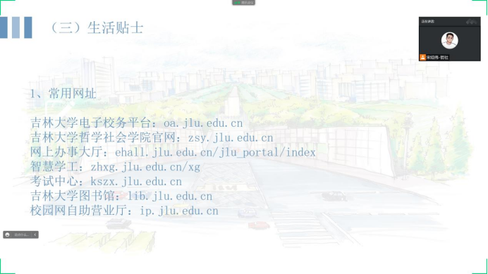为协助2022级新同学更快更好地适应大学校园生活,养成良好习惯,积极迎接新学期到来,2022年9月4日上午,哲学社会学院开展新同学校园生活分享交流线上活动。此次活动由22级新生辅导员宋绍伟老师主讲,全体辅导员助理和22级本科生同学参与其中。