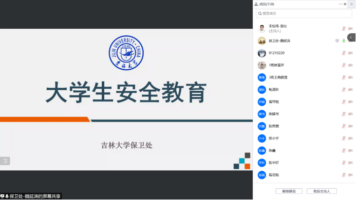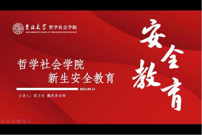 为将新同学校园生活安全保障落到实处,帮助新同学提升安全意识、维护切身利益,同时充分发挥传统节日安全育人的载体作用,2022年9月11日下午13时,由吉林大学哲学社会学院组织的平安中秋主题安全宣讲活动正式举办。本次宣讲活动由吉林大学保卫处宣传教育科科长魏延涛老师主讲,辅导员宋绍伟老师主持,22级全体本科生同学参加了此次活动。