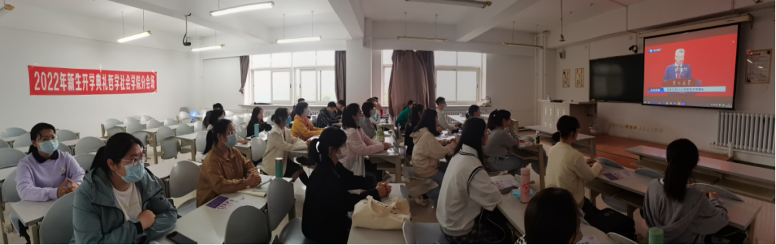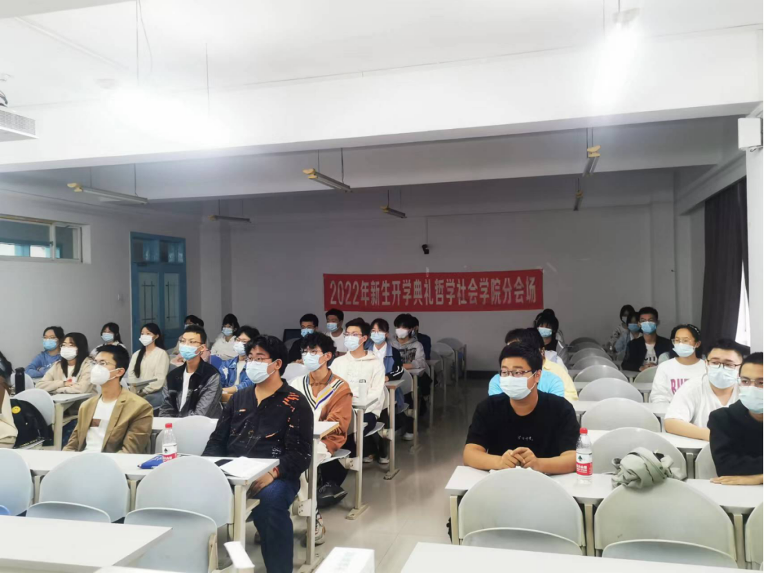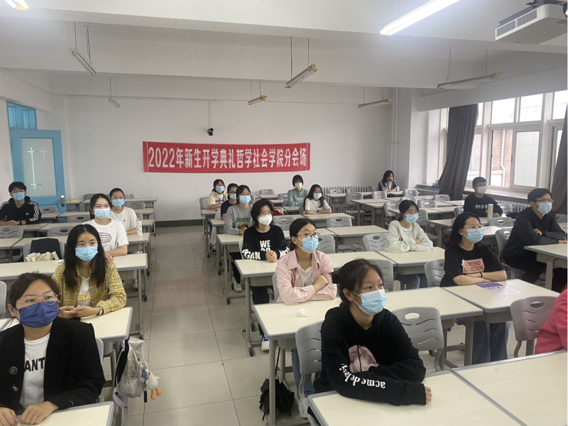 2022年9月15日上午,吉林大学2022年新生开学典礼在中心校区宋治平体育馆举行。结合学校防疫工作要求,哲学社会学院主要领导老师与2022级本科生和研究生同学们以分会场形式齐聚线下,集体观看典礼。