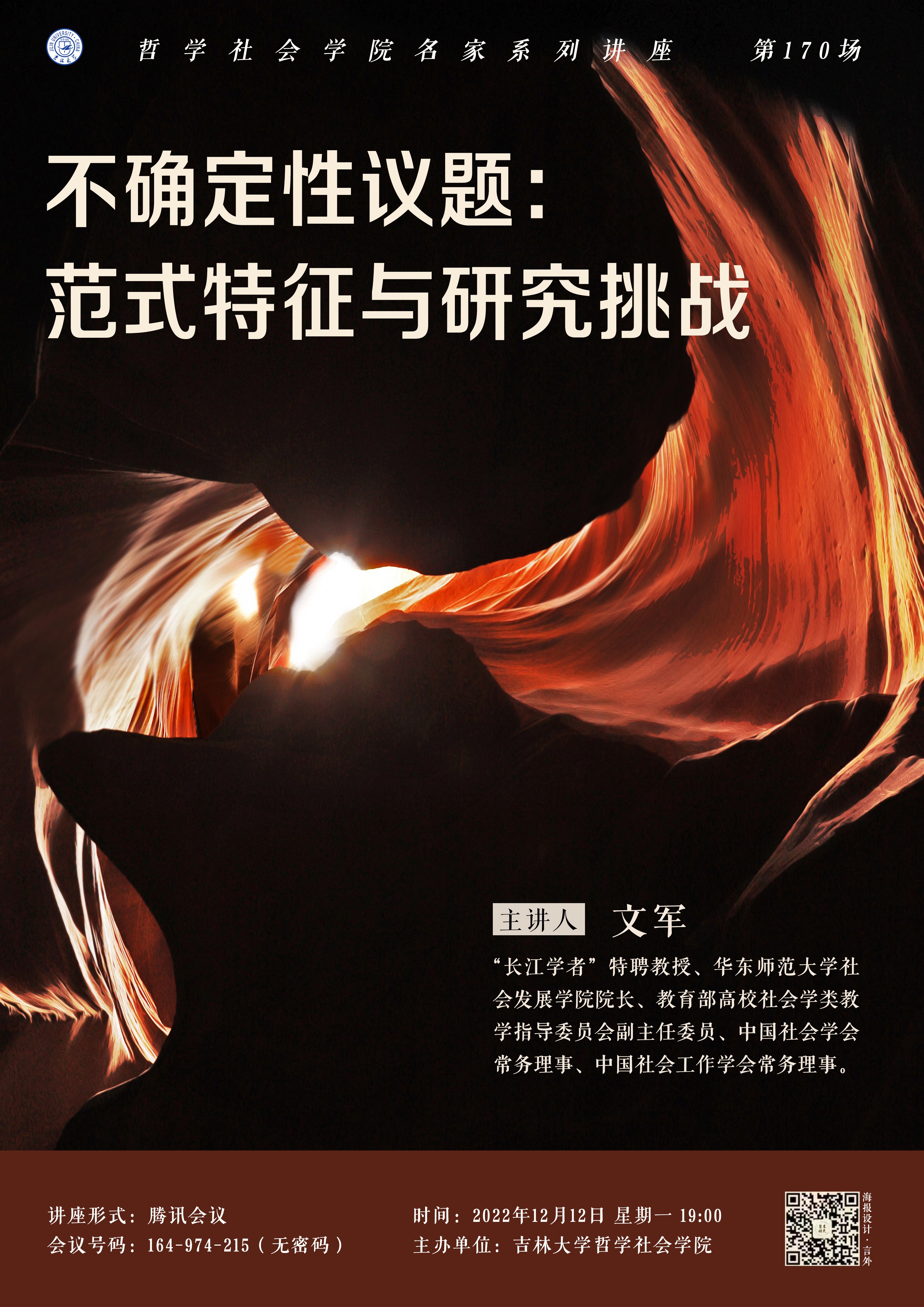 【哲学社会学院名家系列讲座第170场】文军:不确定性议题:范式特征与研究挑战