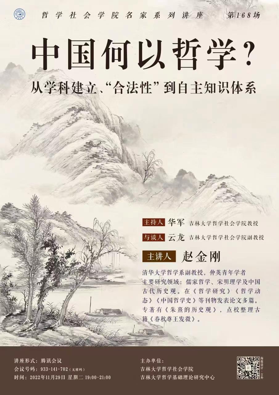 【哲学社会学院名家系列讲座第168场】赵金刚:中国何以哲学?从学科建立、“合法性”到自主知识体系