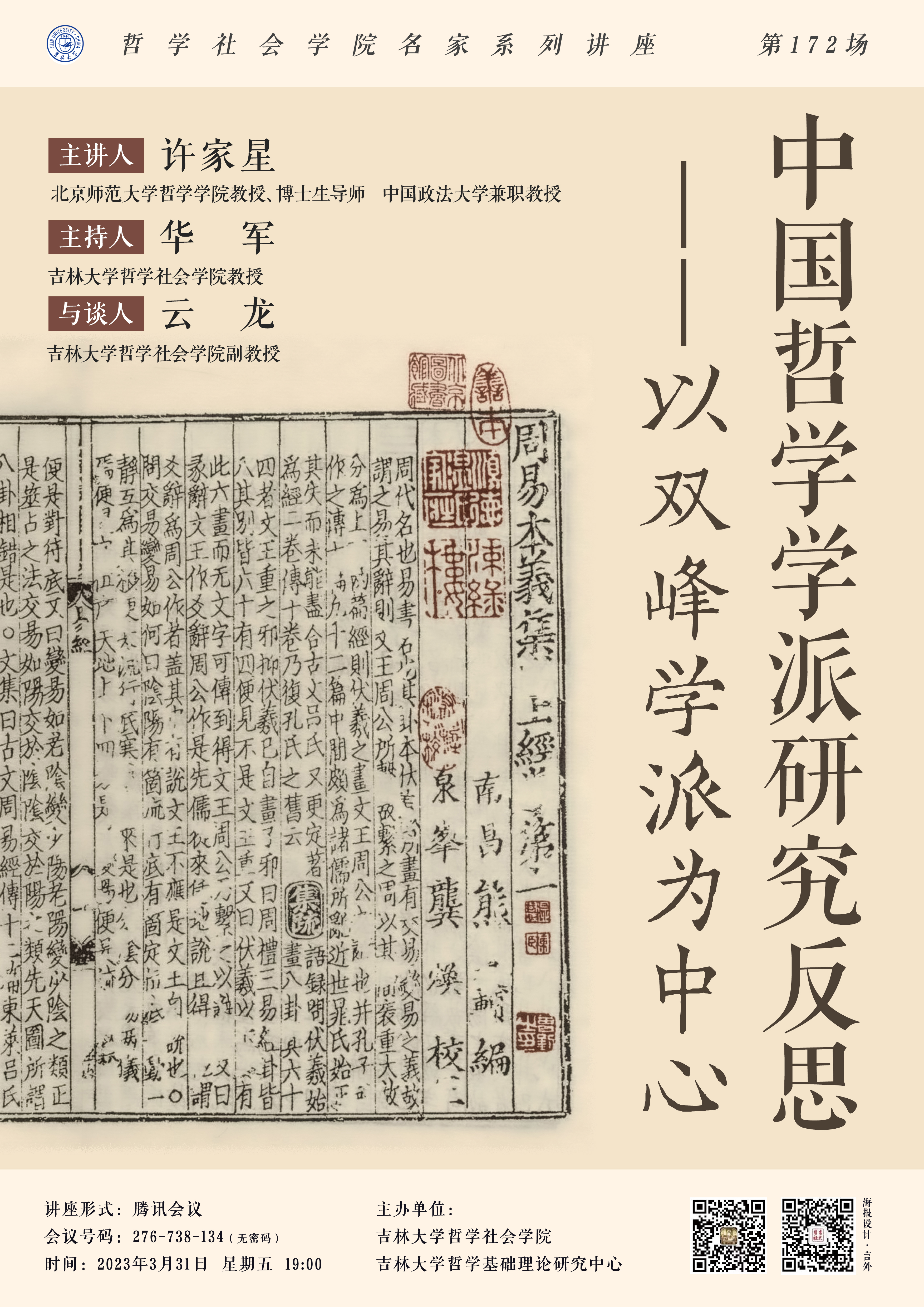 【哲学社会学院名家系列讲座第172场】许家星:中国哲学学派研究反思——以双峰学派为中心