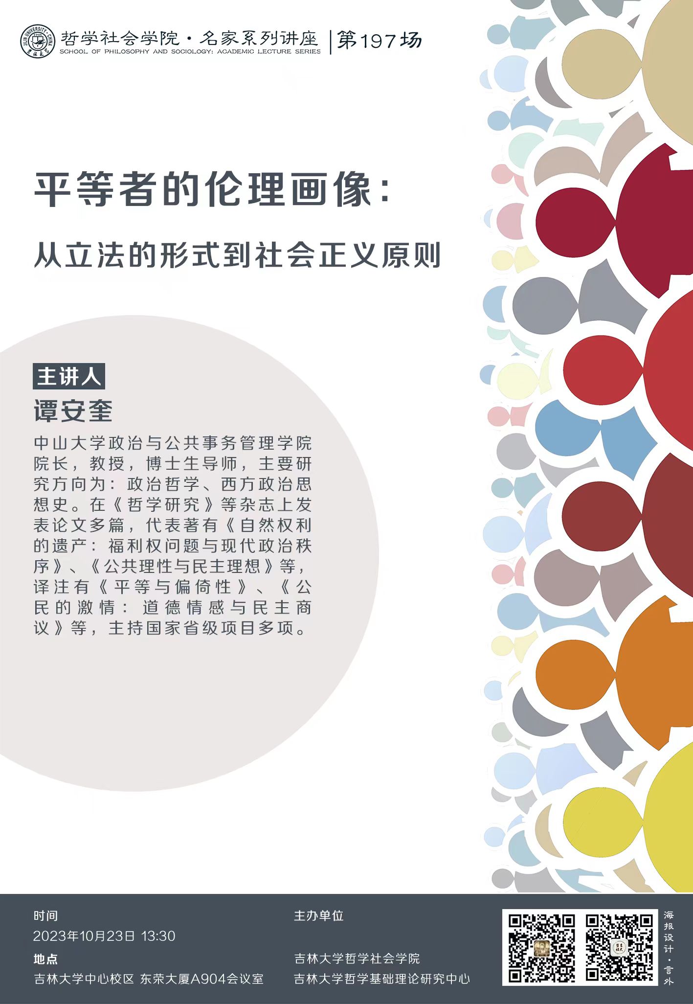【哲学社会学院名家系列讲座第197场】谭安奎:平等者的伦理画像:从立法的形式到社会正义原则