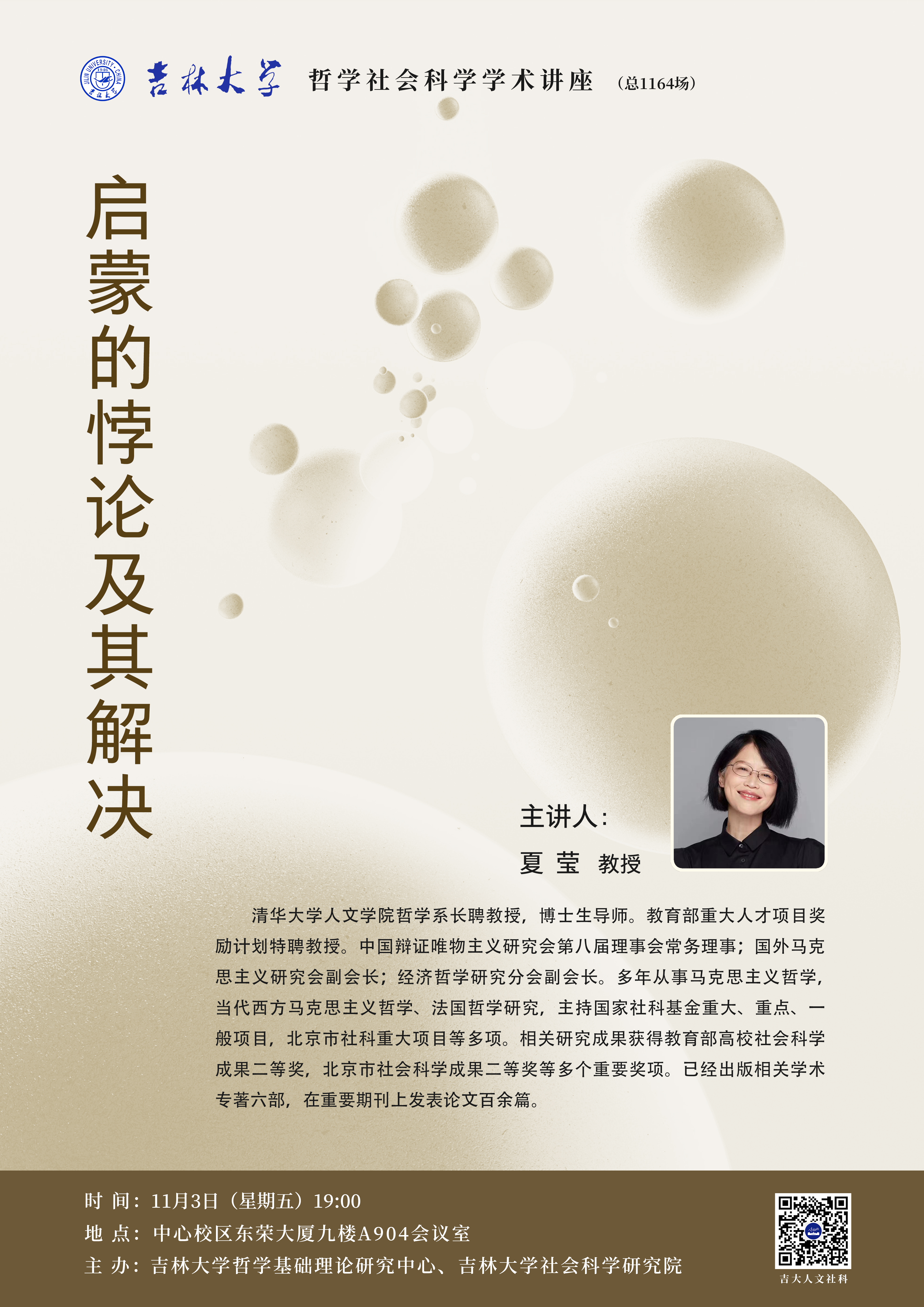 吉林大学哲学社会科学学术讲座(总1164场)夏莹:启蒙的悖论及其解决