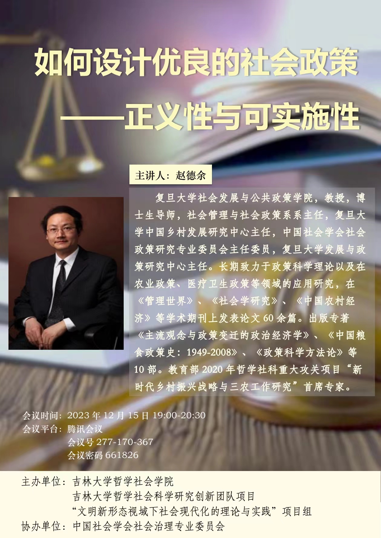 【学术讲座】赵德余:如何设计优良的社会政策——正义性与可实施行
