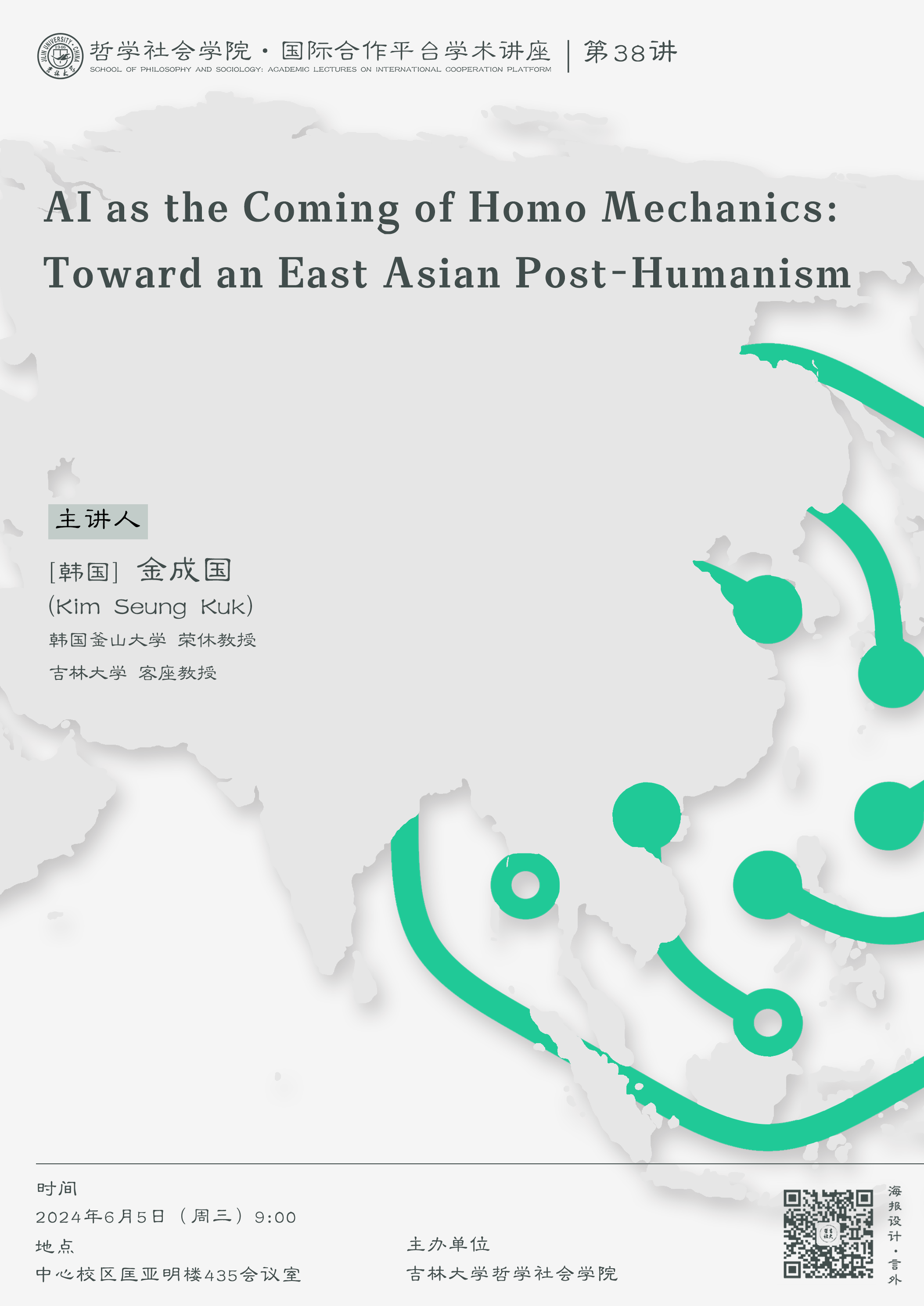 【哲学社会学院·国际合作平台学术讲座 第38讲】金成国:AI as the Coming of Homo Mechanics:Toward an East Asian Post-Humanism