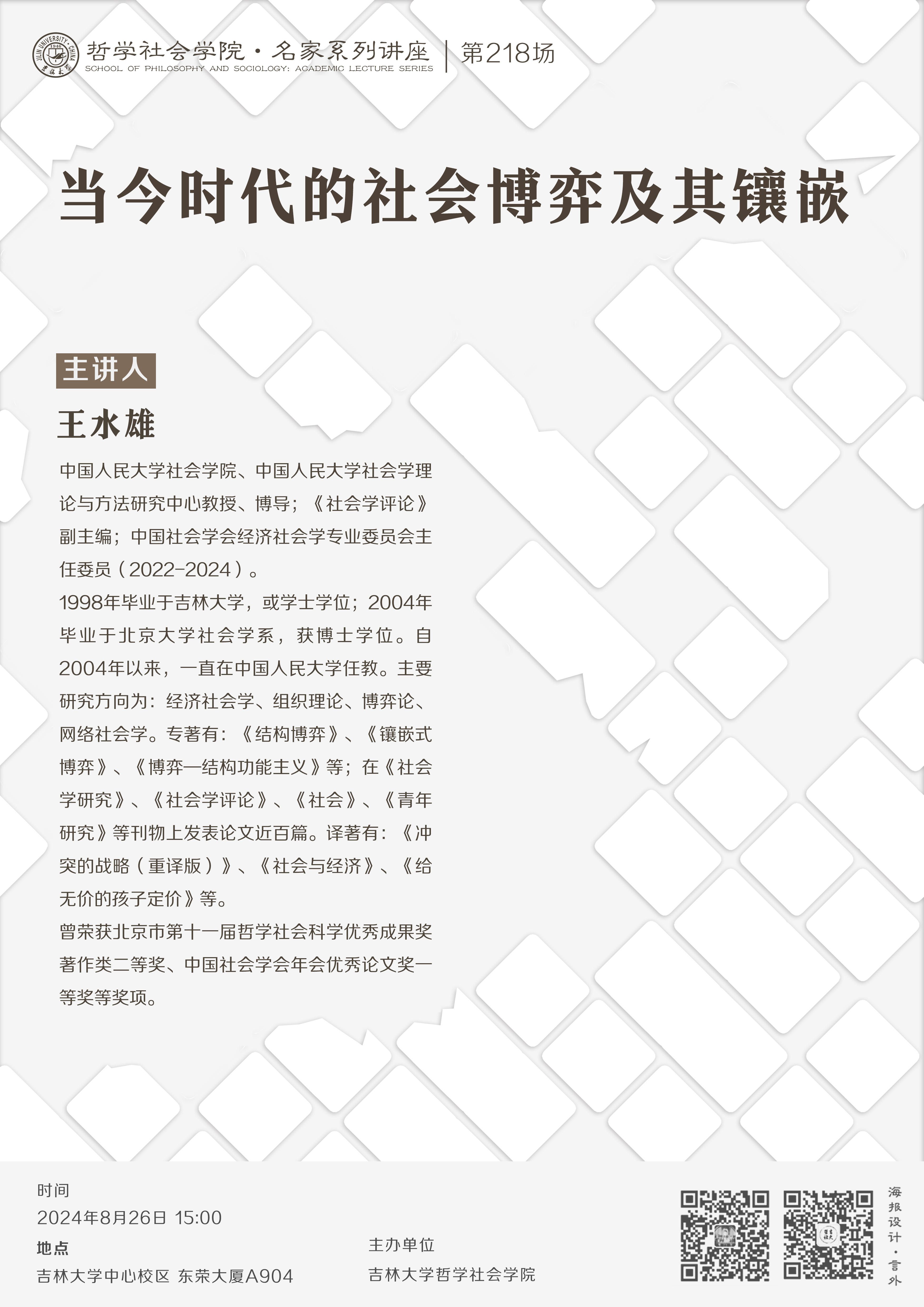 【哲学社会学院名家系列讲座第218场】王水雄:当今时代的社会博弈及其镶嵌
