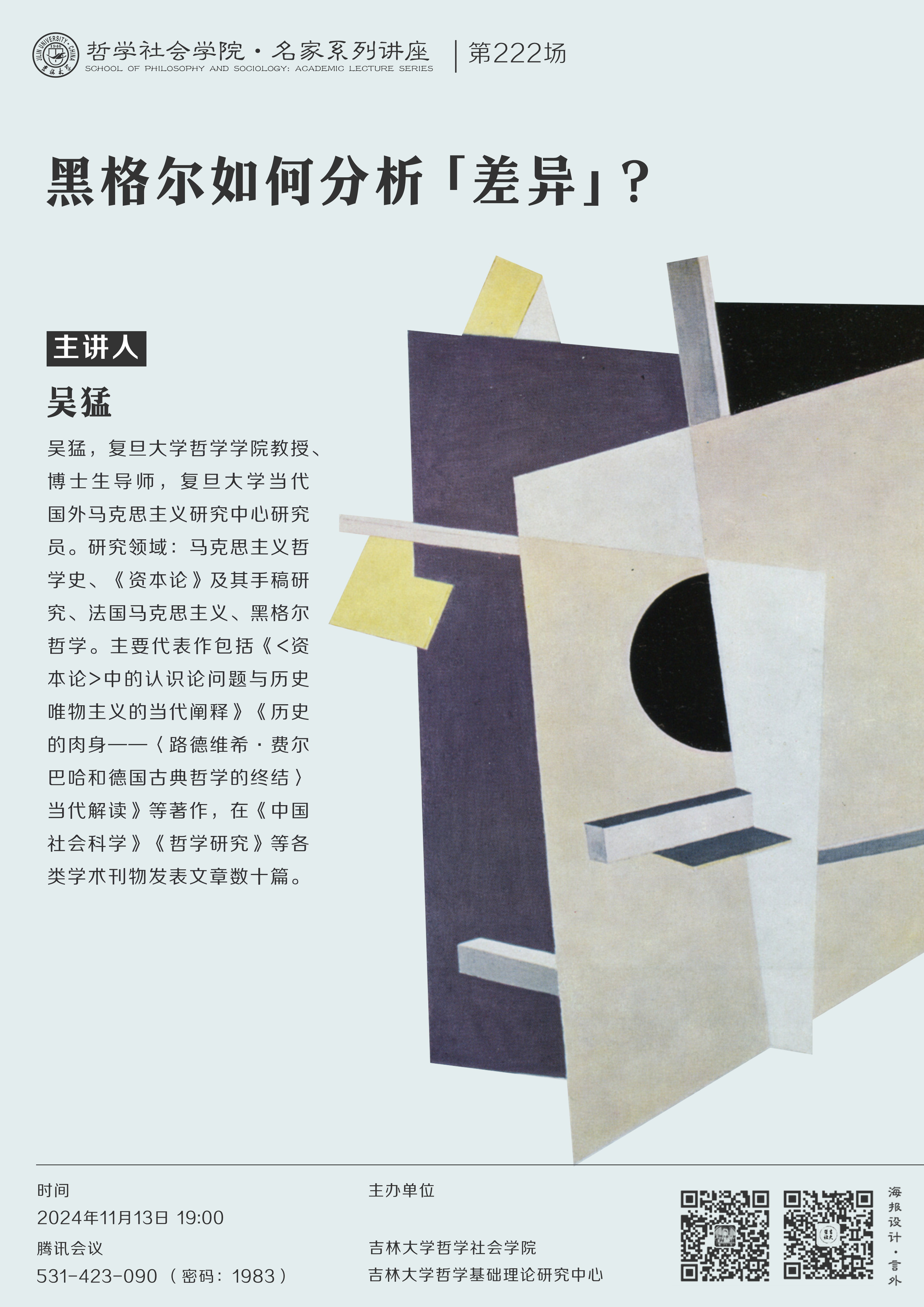 【哲学社会学院名家系列讲座第222场】吴猛:黑格尔如何分析“差异”?