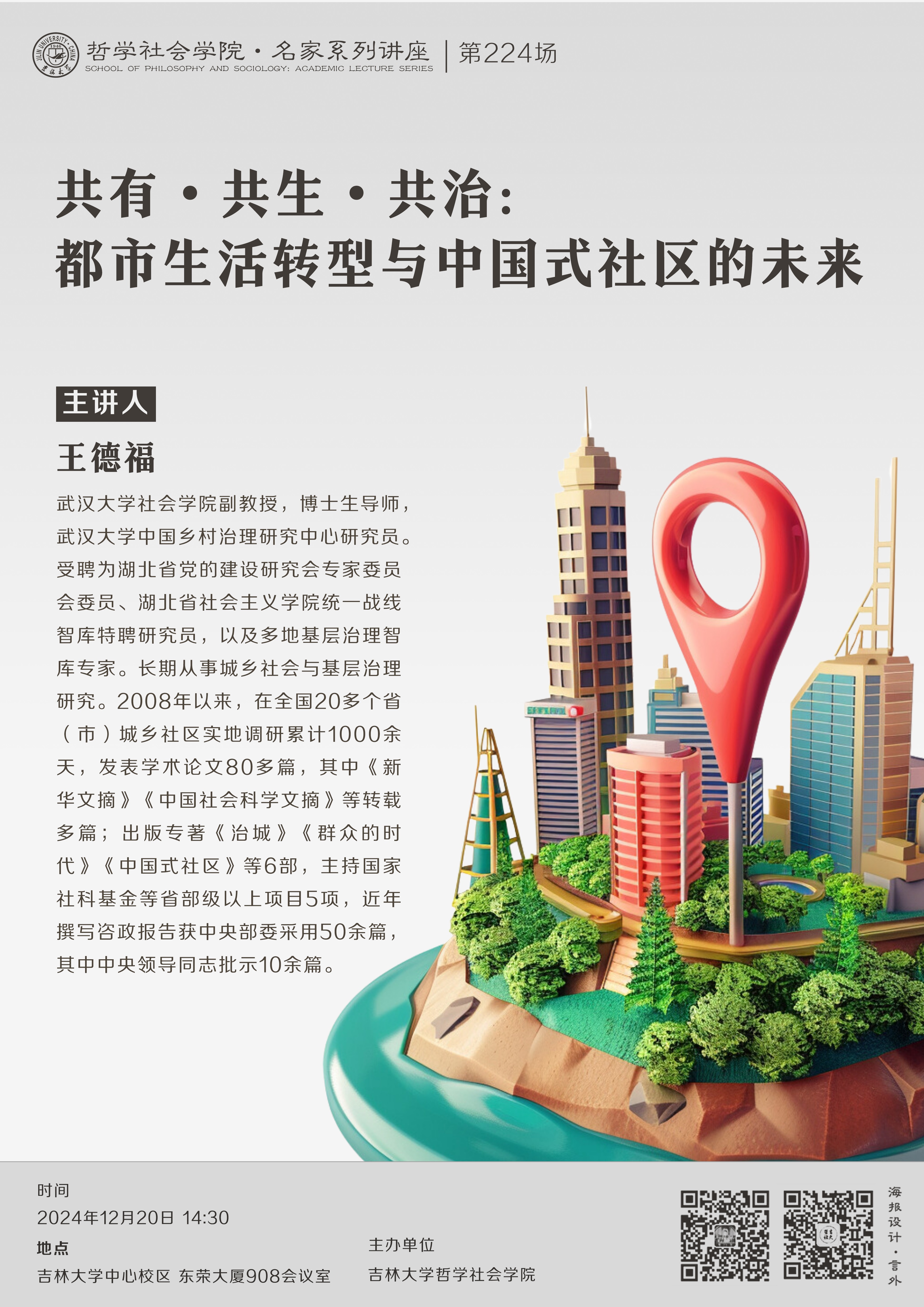【哲学社会学院名家系列讲座第224场】王德福:共有•共生•共治:都市生活转型与中国式社区的未来