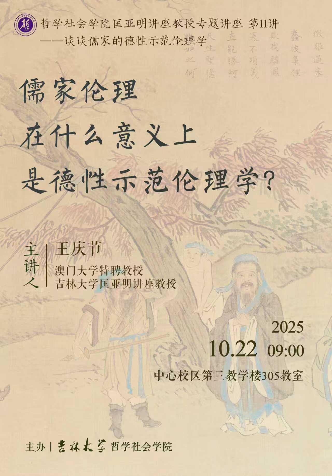 【哲学社会学院匡亚明讲座教授专题讲座第9-11讲】王庆节: 谈谈儒家的德性示范伦理学