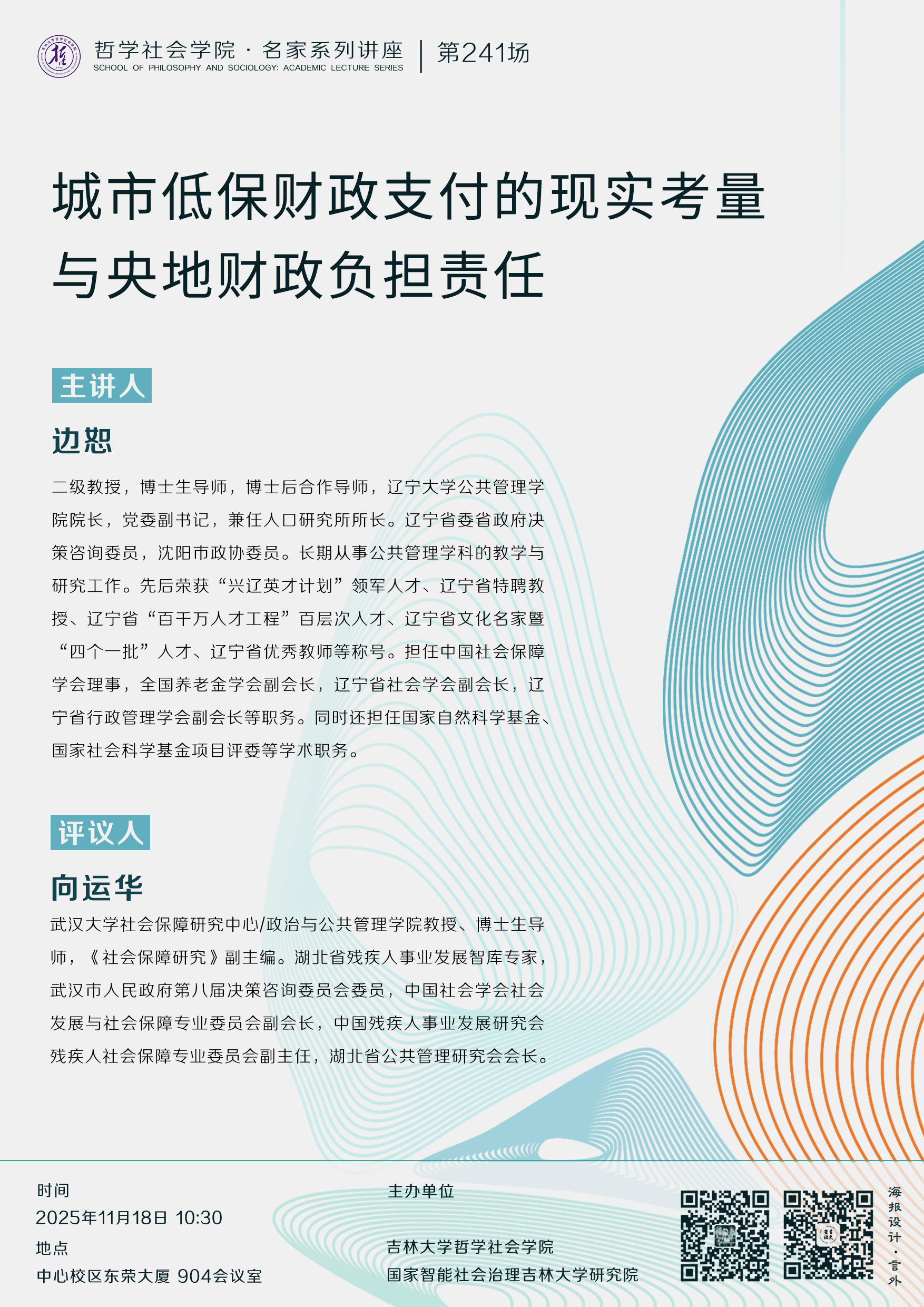 【哲学社会学院名家系列讲座第241场】边恕、向运华:城市低保财政支付的现实考量与央地财政负担责任