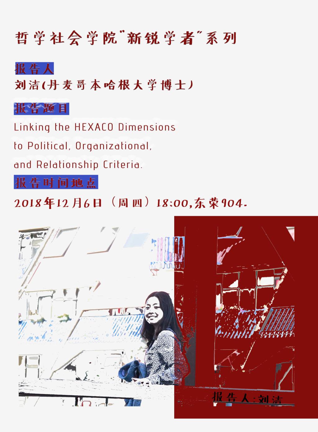 【哲学社会学院“新锐学者”系列】刘洁:Linking the HEXACO Dimensions to Political,Organizational,and Relationship Criteria