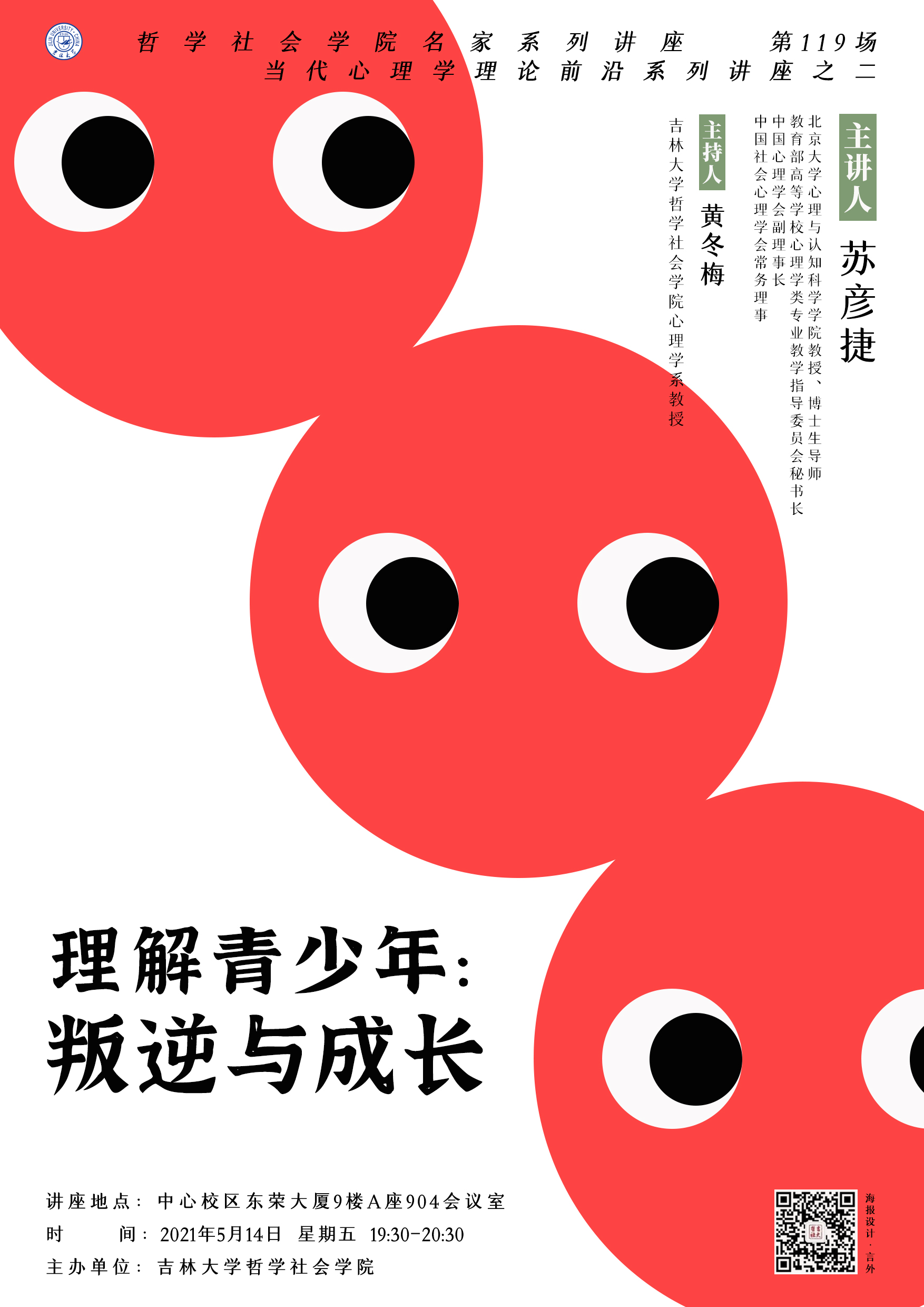 【哲学社会学院名家系列讲座第119场】【当代心理学理论前沿系列讲座之二】苏彦捷:理解青少年:叛逆与成长