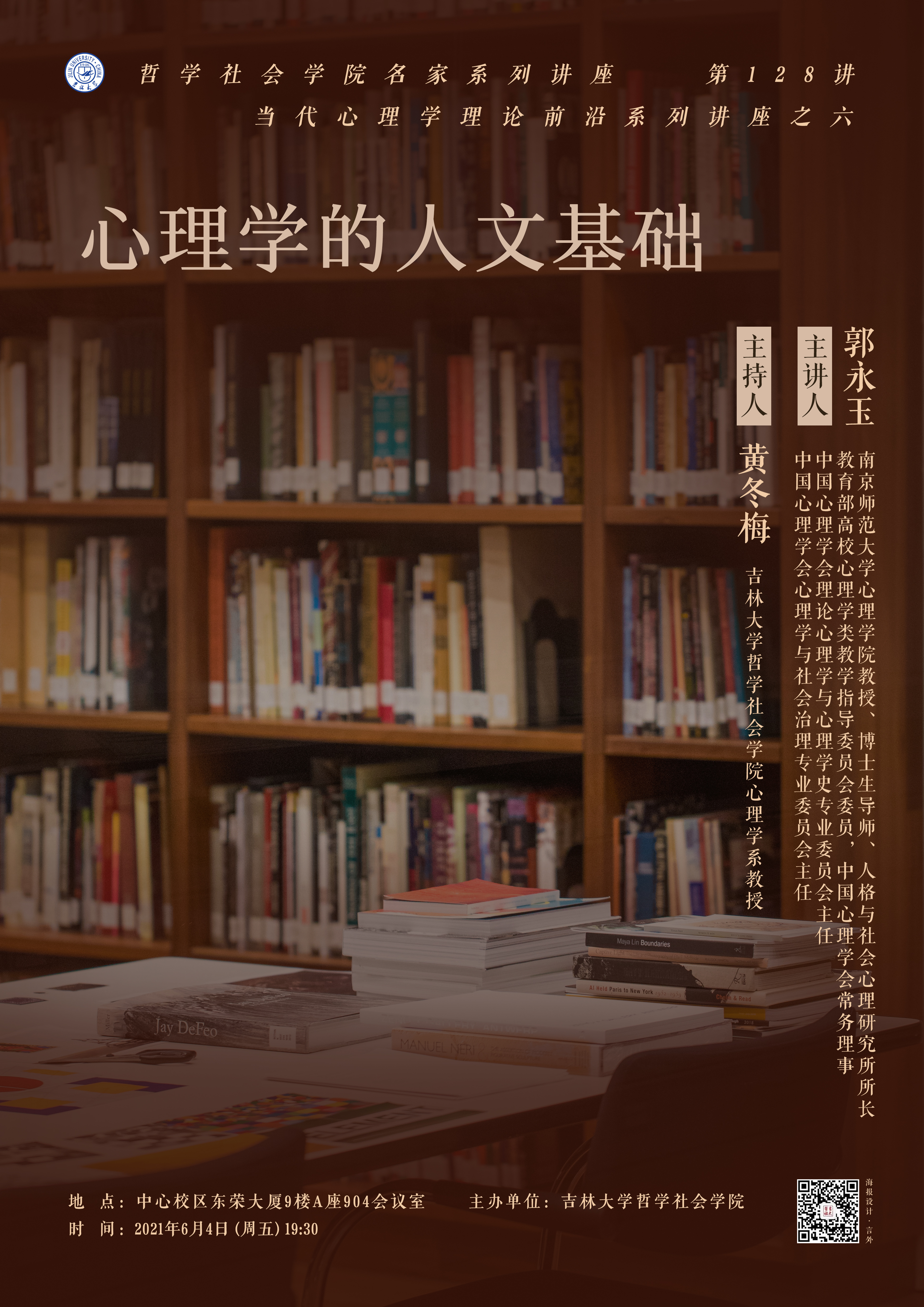 【哲学社会学院名家系列讲座第128场】【当代心理学理论前沿系列讲座之六】 郭永玉:心理学的人文基础