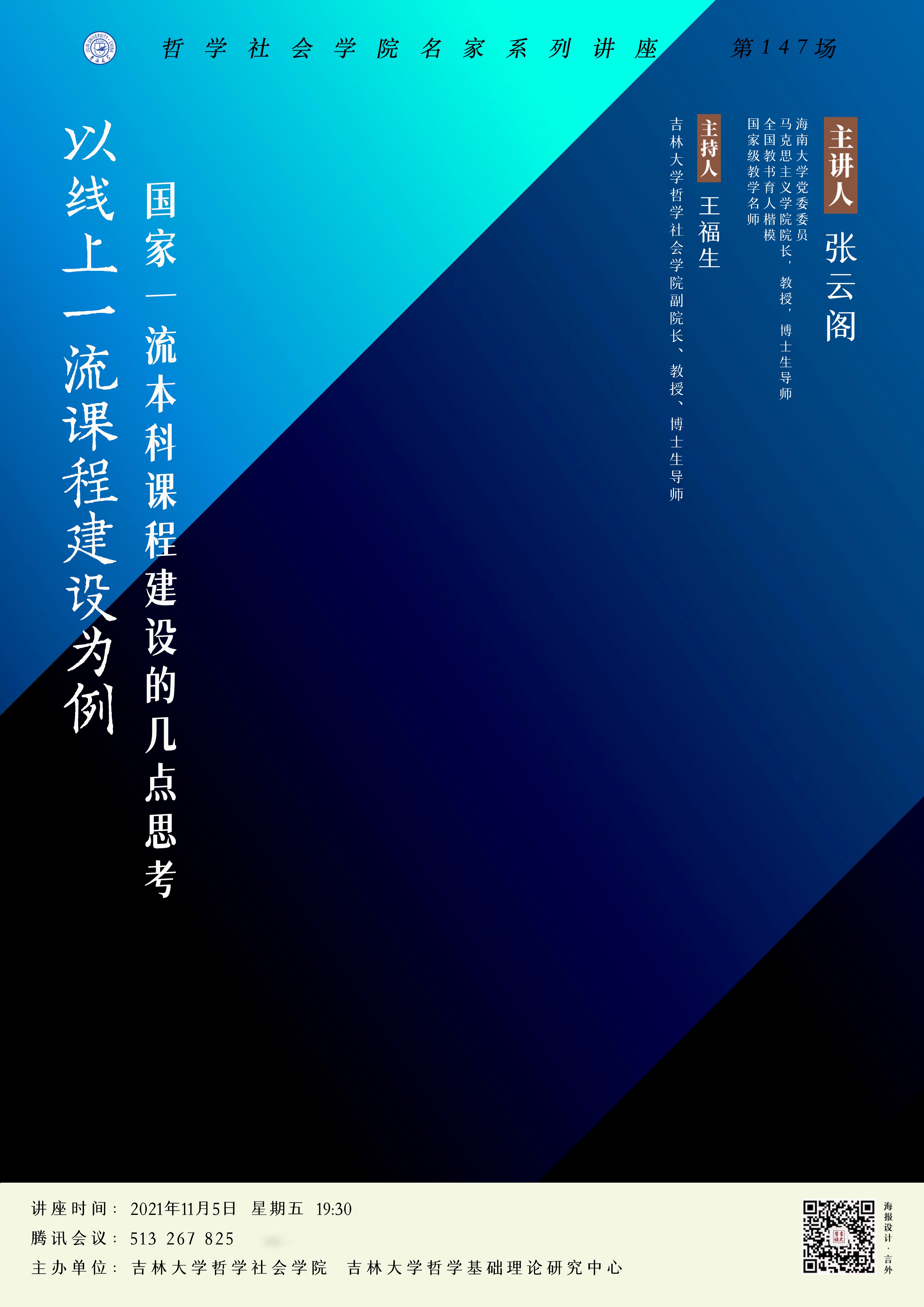 【哲学社会学院名家系列讲座第147场】 张云阁:以线上一流课程建设为例——国家一流本科课程建设的几点思考
