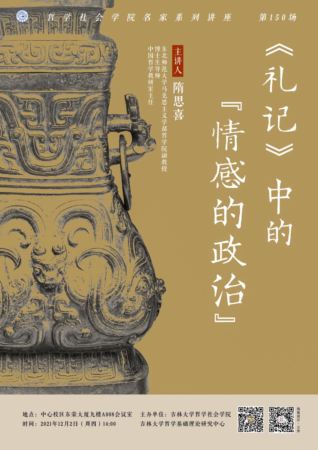 【哲学社会学院名家系列讲座第150场】隋思喜:《礼记》中的“情感的政治”