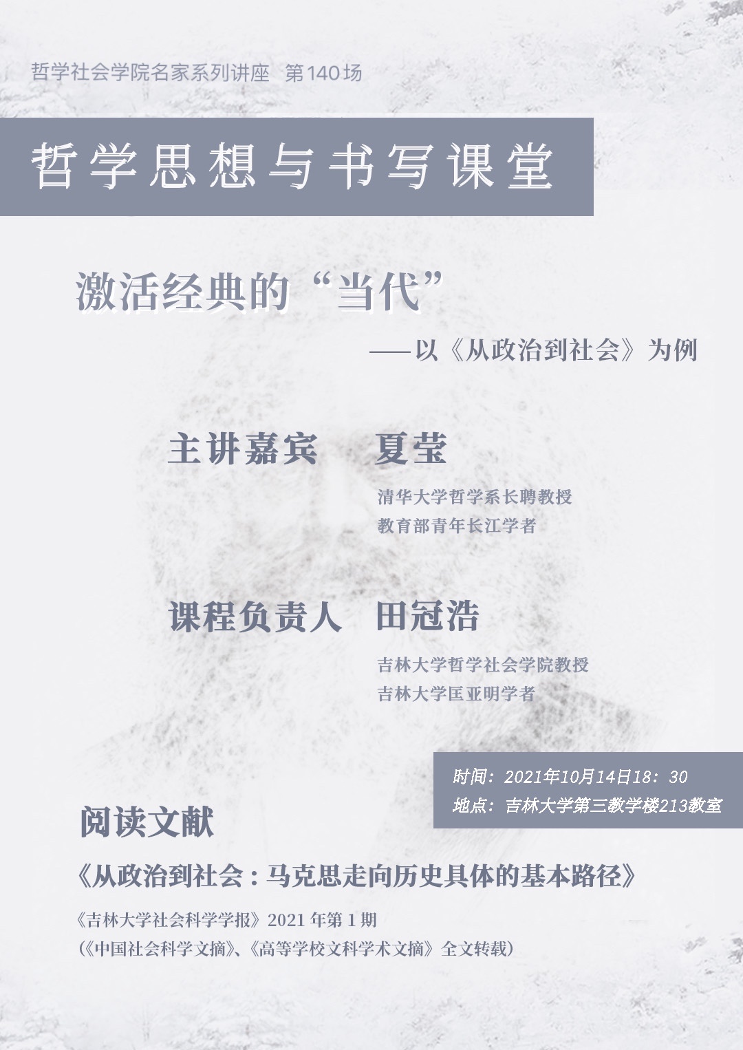 【哲学社会学院名家系列讲座第140场】【哲学思想与书写讲堂】夏莹:激活经典的“当代”——以《从政治到社会》为例
