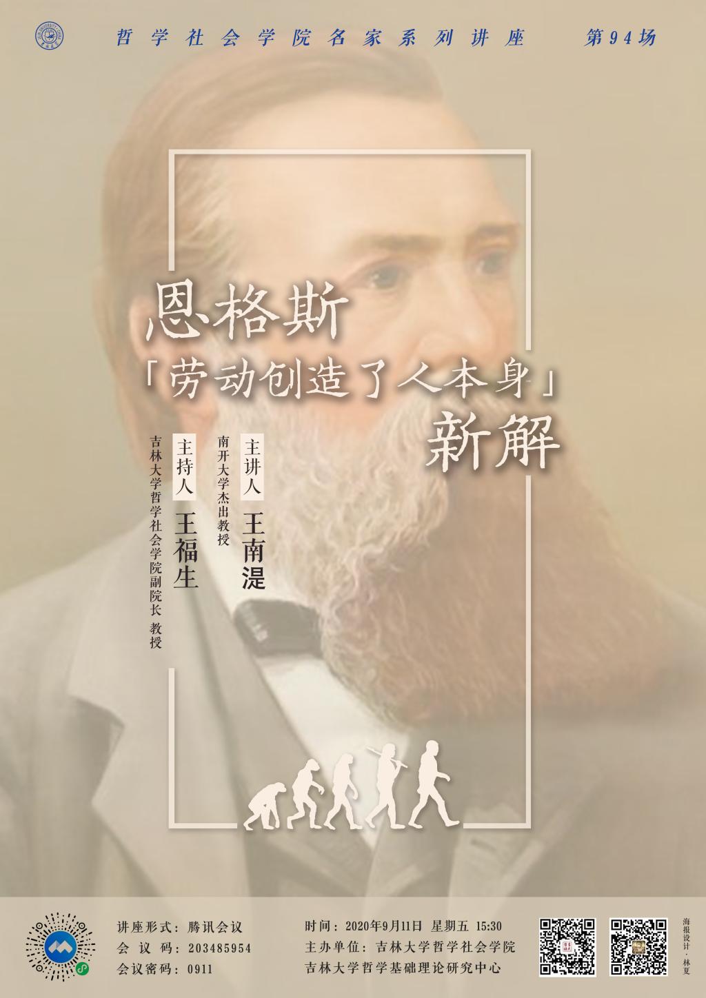 【哲学社会学院名家系列讲座第94场】王南湜:恩格斯“劳动创造了人本身”新解