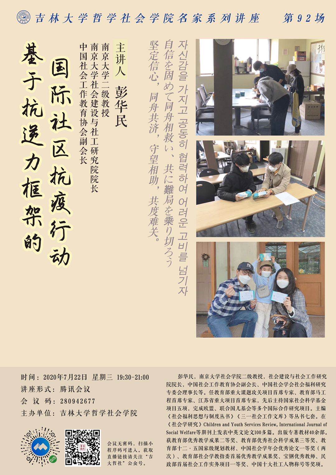 【哲学社会学院名家系列讲座第92场】彭华民:基于抗逆力框架的国际社区抗疫行动