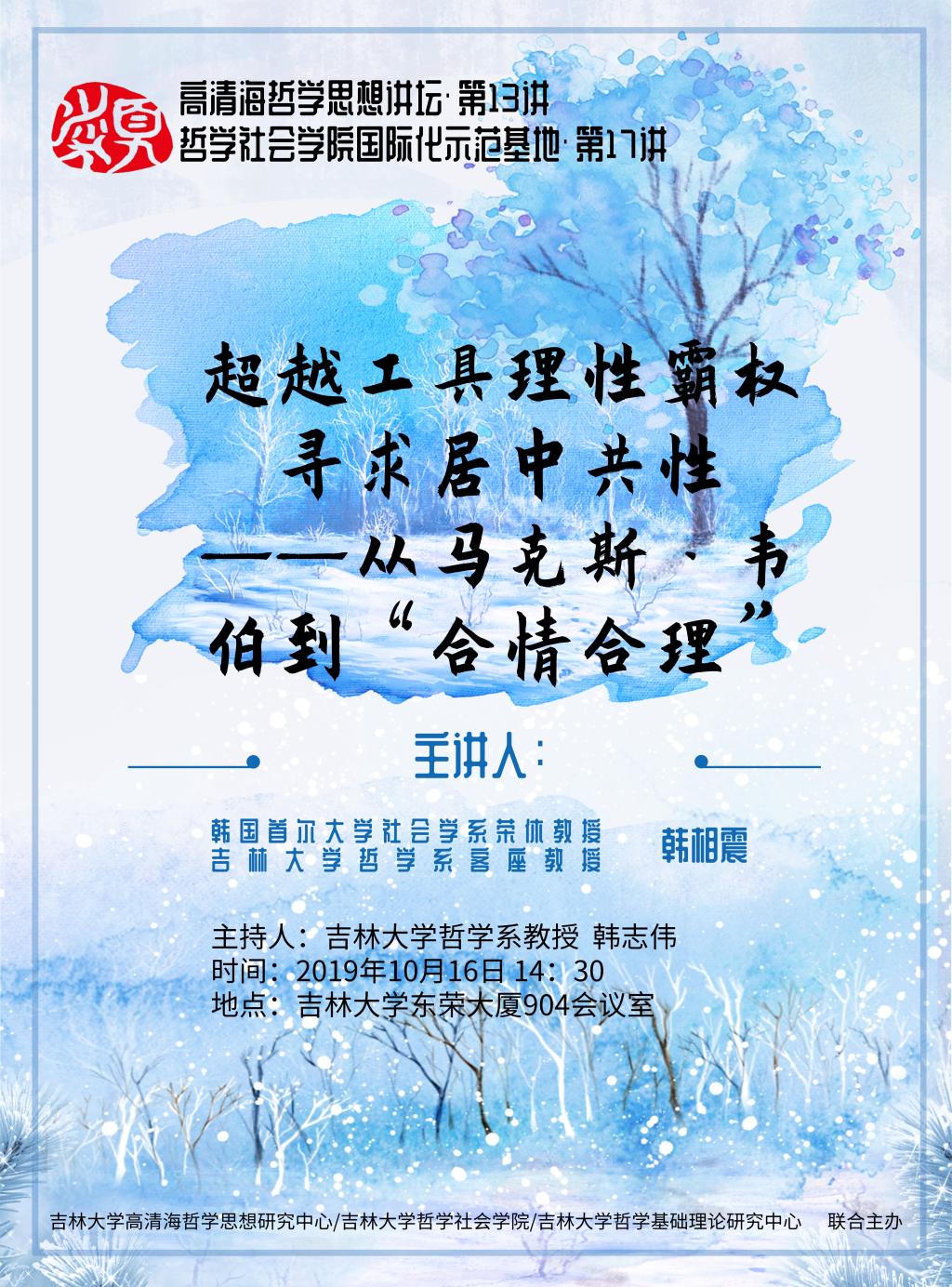 【哲学社会学院国际化示范基地学术讲座第17讲】【高清海哲学思想讲坛第13讲】韩相震:超越工具理性霸权寻求居中共性——从马克斯·韦伯到“合情合理”