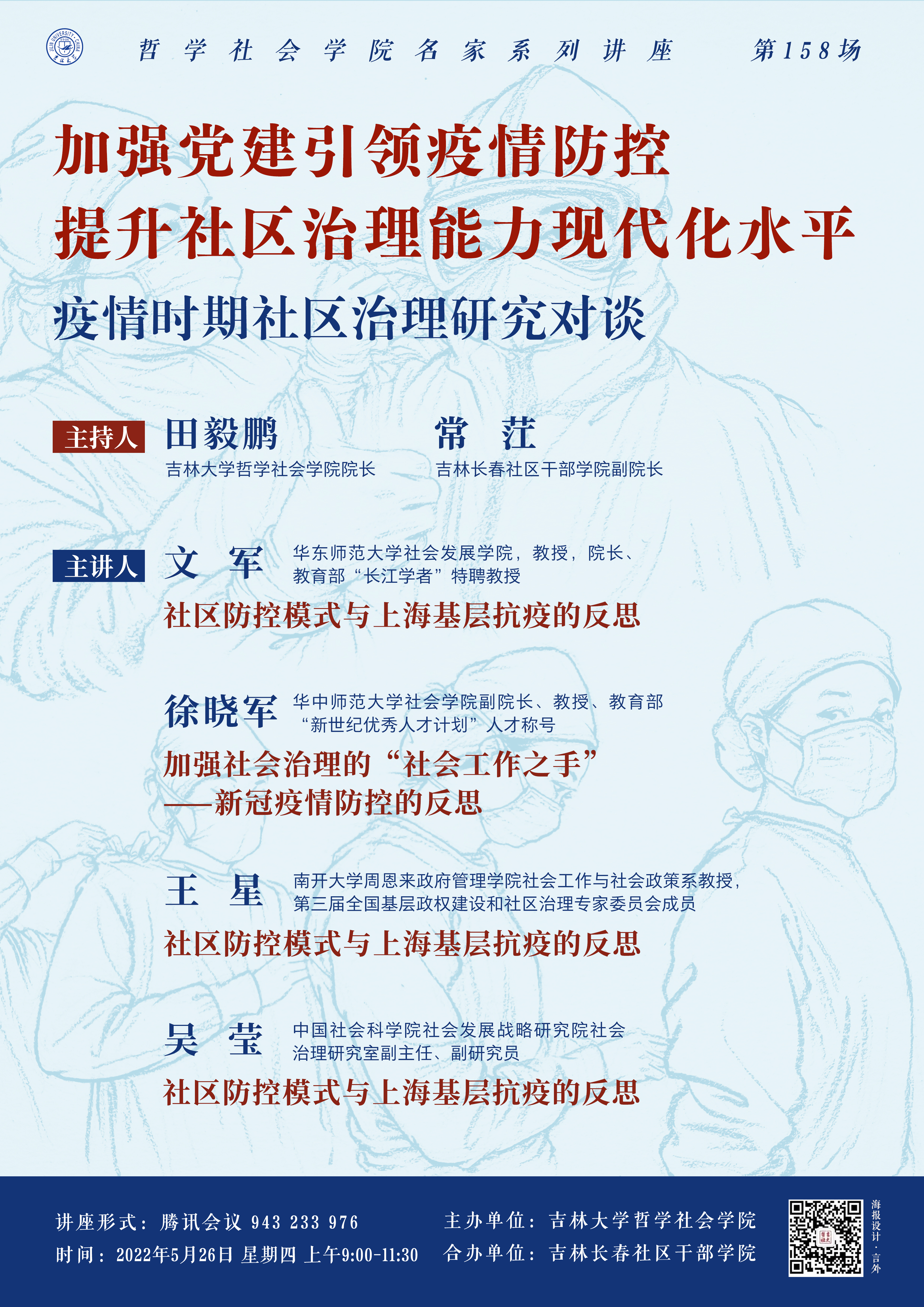 【哲学社会学院名家系列讲座第158场】加强党建引领疫情防控提升社区治理能力现代化水平——疫情时期社区治理研究对谈