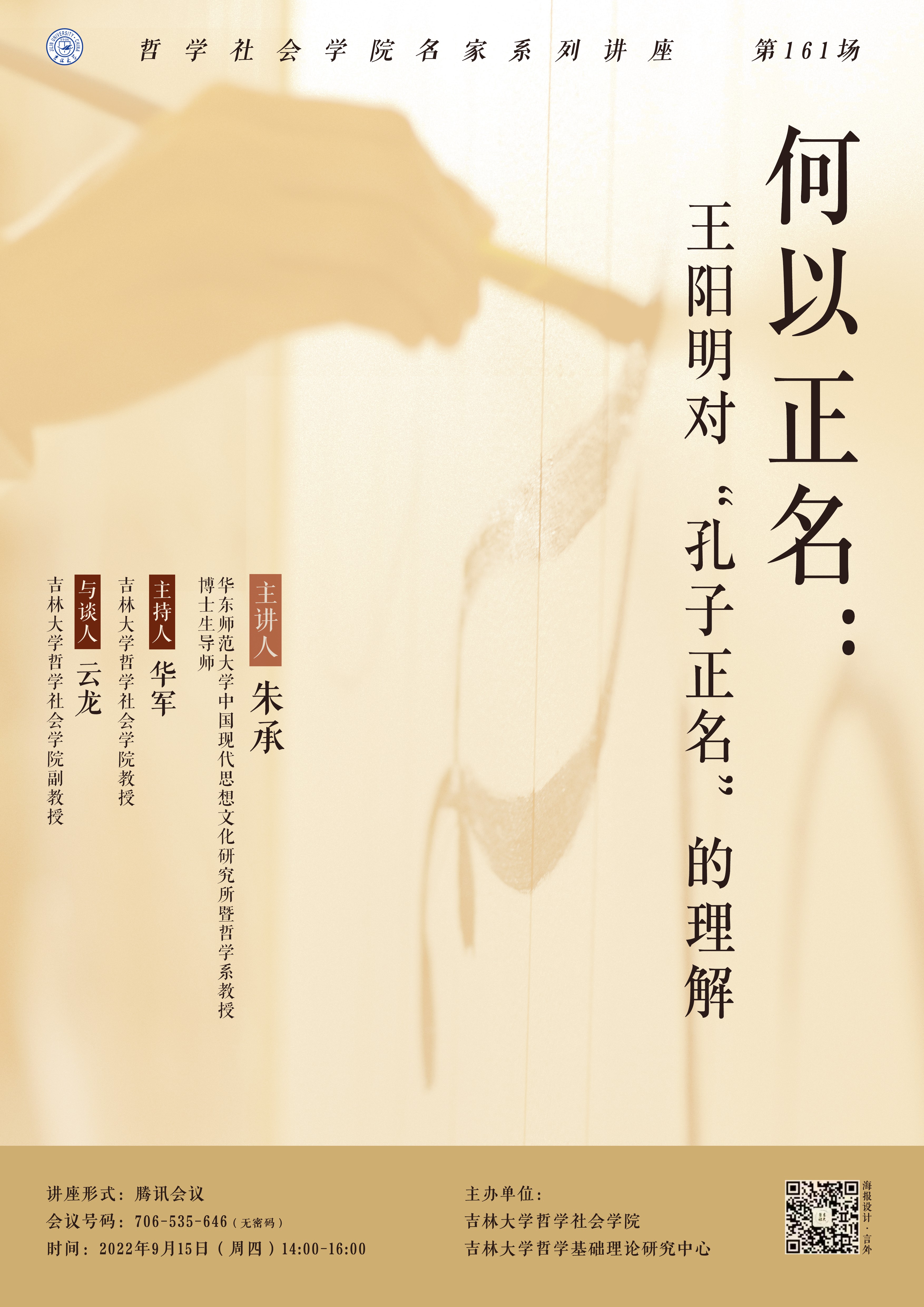 【哲学社会学院名家系列讲座第161场】朱承:何以正名:王阳明对“孔子正名”的理解