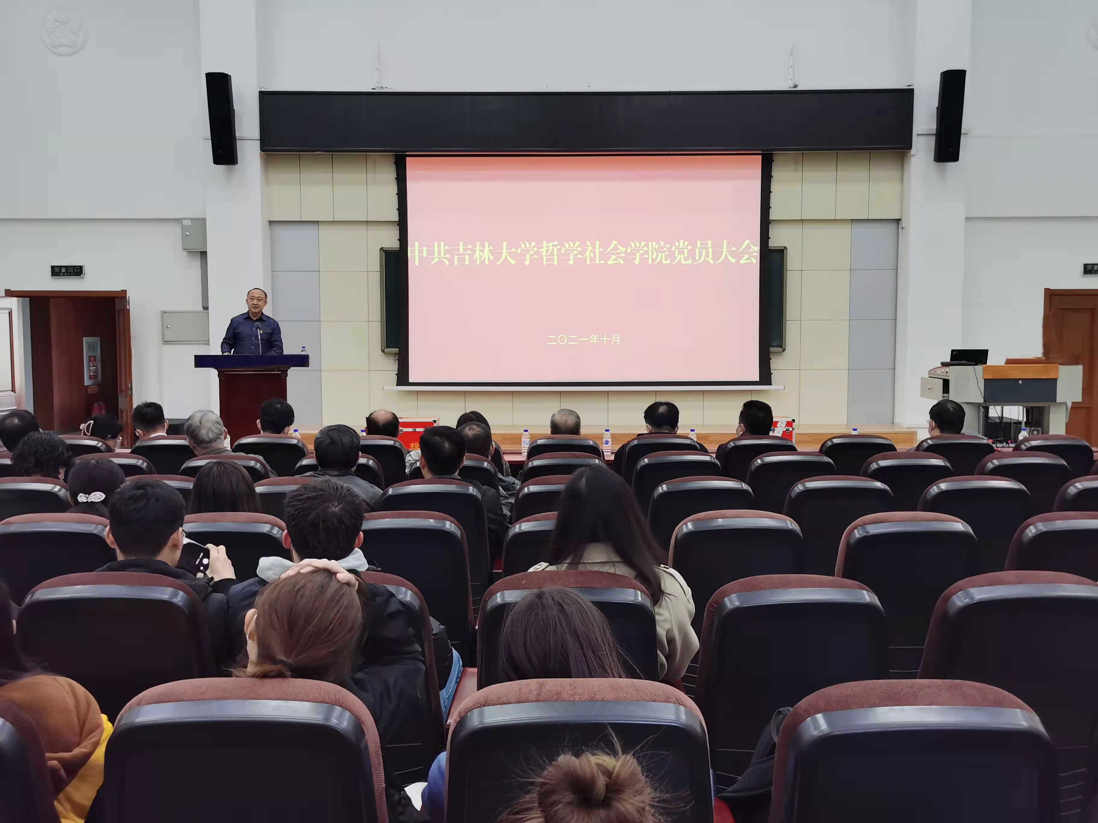 根据学校党委《关于做好中国共产党吉林大学第十五次代表大会代表选举工作的通知》(校党发〔2021〕74号)要求,为认真做好代表选举工作,2021年10月20日,哲学社会学院在数学楼报告厅召开全体党员大会。吉林大学党建工作联络员陈密同志到会指导,会议由学院党委书记李佰志同志主持。