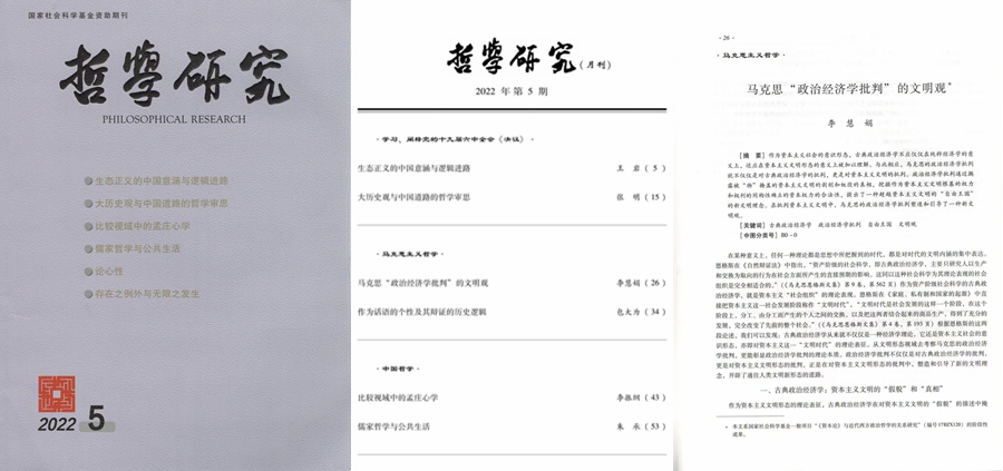 【消息来源:社会科学研究院】近日,吉林大学哲学基础理论研究中心专职研究员、吉林大学哲学社会学院教授李慧娟在《哲学研究》2022年第5期发表文章《马克思“政治经济学批判”的文明观》,系统论证了马克思“政治经济学批判”塑造和引导了一种新文明观。