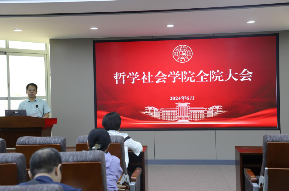 为做好2023-2024学年第二学期期末考试工作,并进一步推进本科教育教学评估工作,哲学社会学院于2024年6月17日召开全院大会。学院领导班子、各系主任及全体教师参与会议,会议由白刚院长主持。