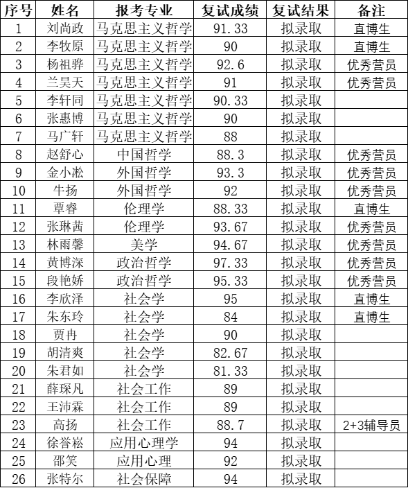 哲学社会学院2025年接收推免成绩及拟录取名单公示