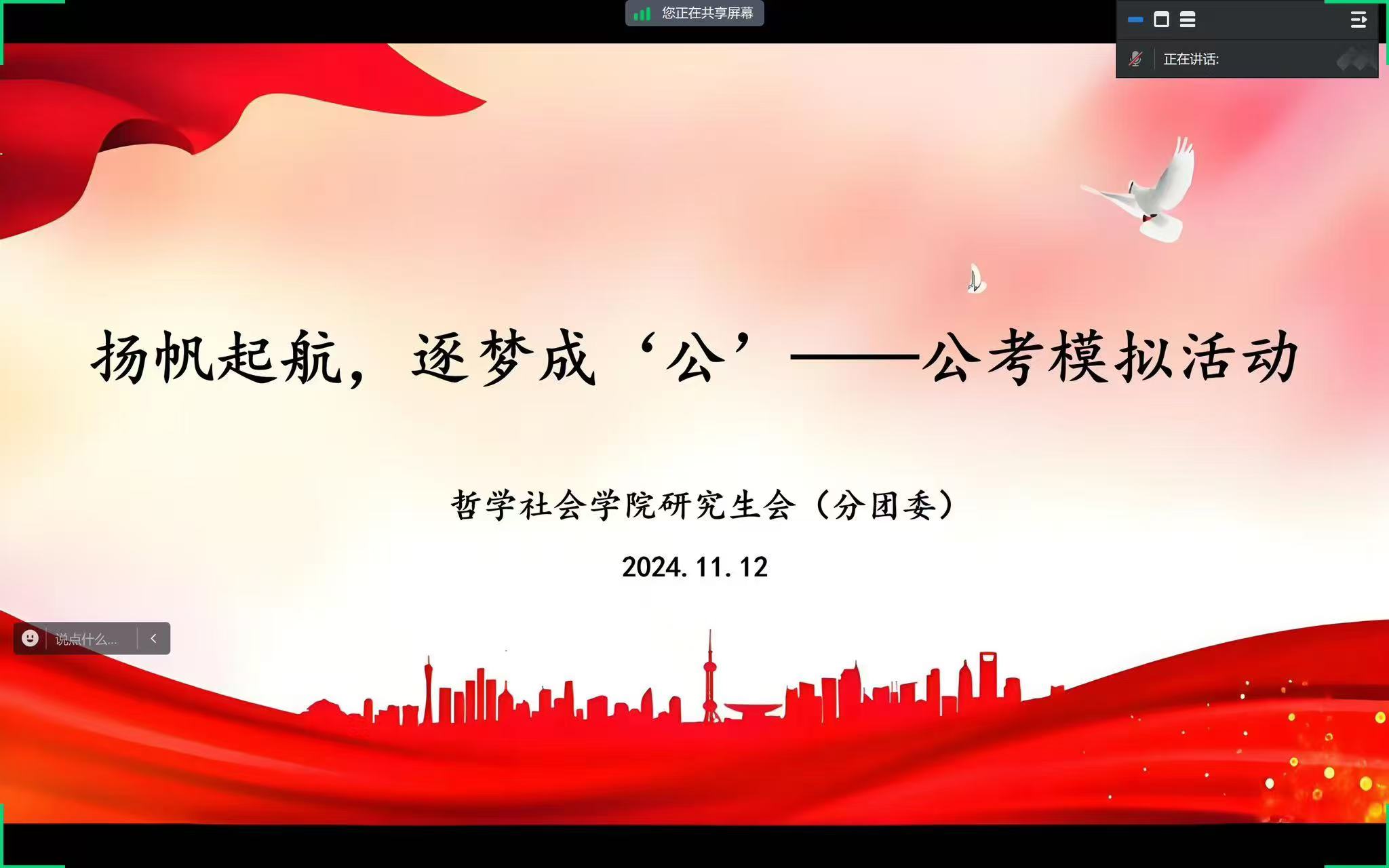 金秋送暖,“职”等你来。为满足2025届毕业生的求职需求,哲学社会学院于2024年11月12日举办公考模拟活动,以模考形式帮助同学们提前适应公考考试节奏、积累公考实战经验。