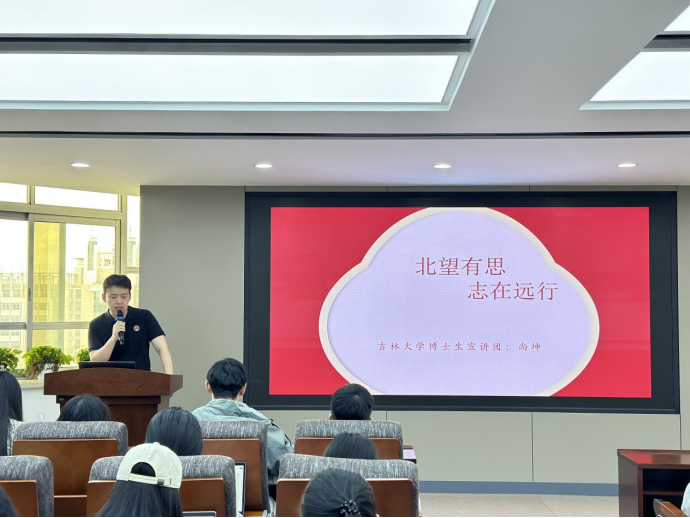 在历史的长河中,年轻一代肩负的责任日益凸显。为了继承和发扬吉林大学的“北上精神”,深化研究生对红色文化的理解与体验,2025年5月23日下午两点,哲学社会学院2024级社会学博士、吉林大学博士生讲师团成员尚坤同学,在东荣大厦904会议室为全体学生党员举办了题为“北上精神:赓续红色血脉,以青春作风筑牢信仰之基”的主题讲座,本次讲座由哲学社会学院辅导员、博士学生第一党支部书记于洋老师主持。
