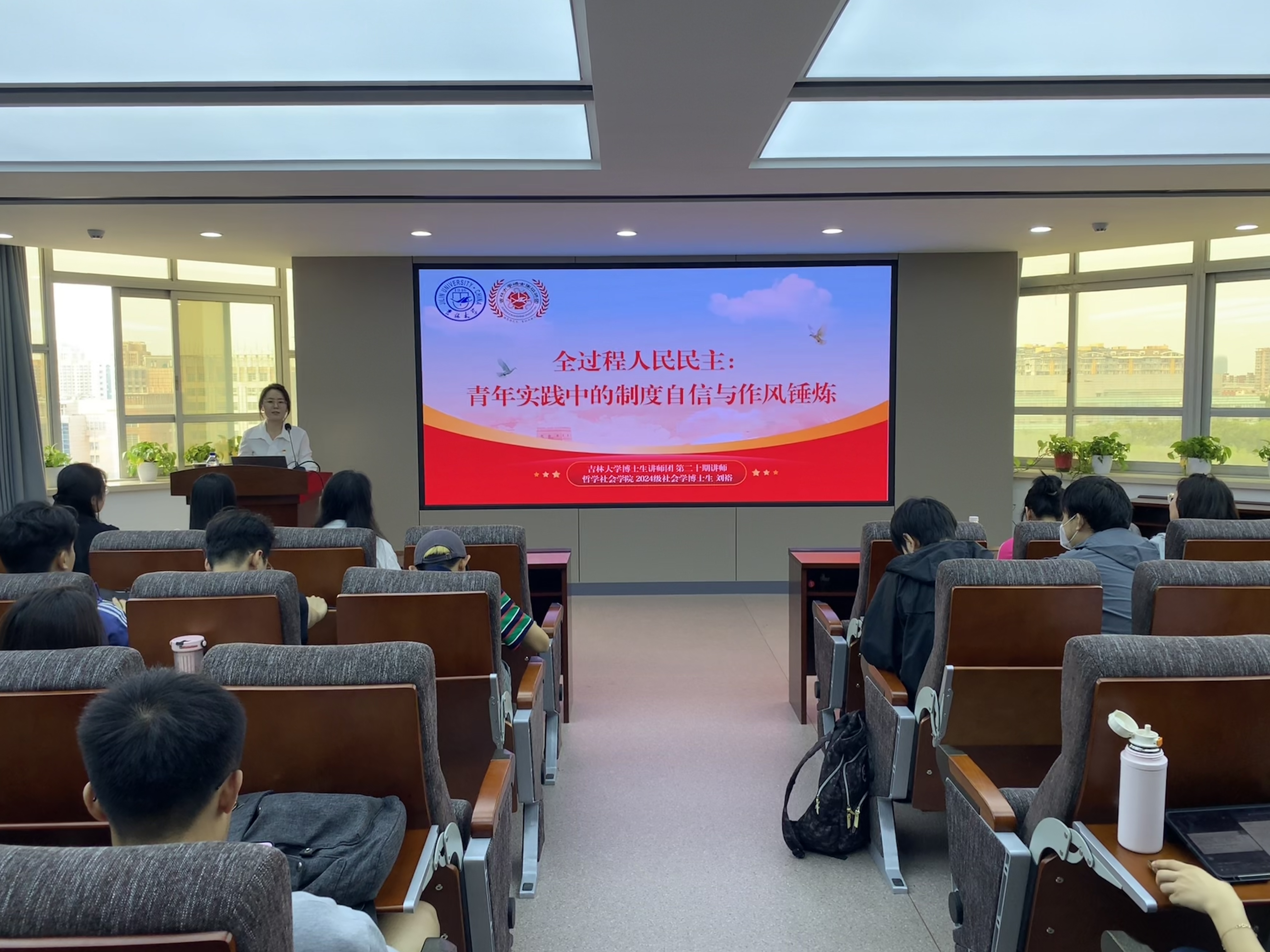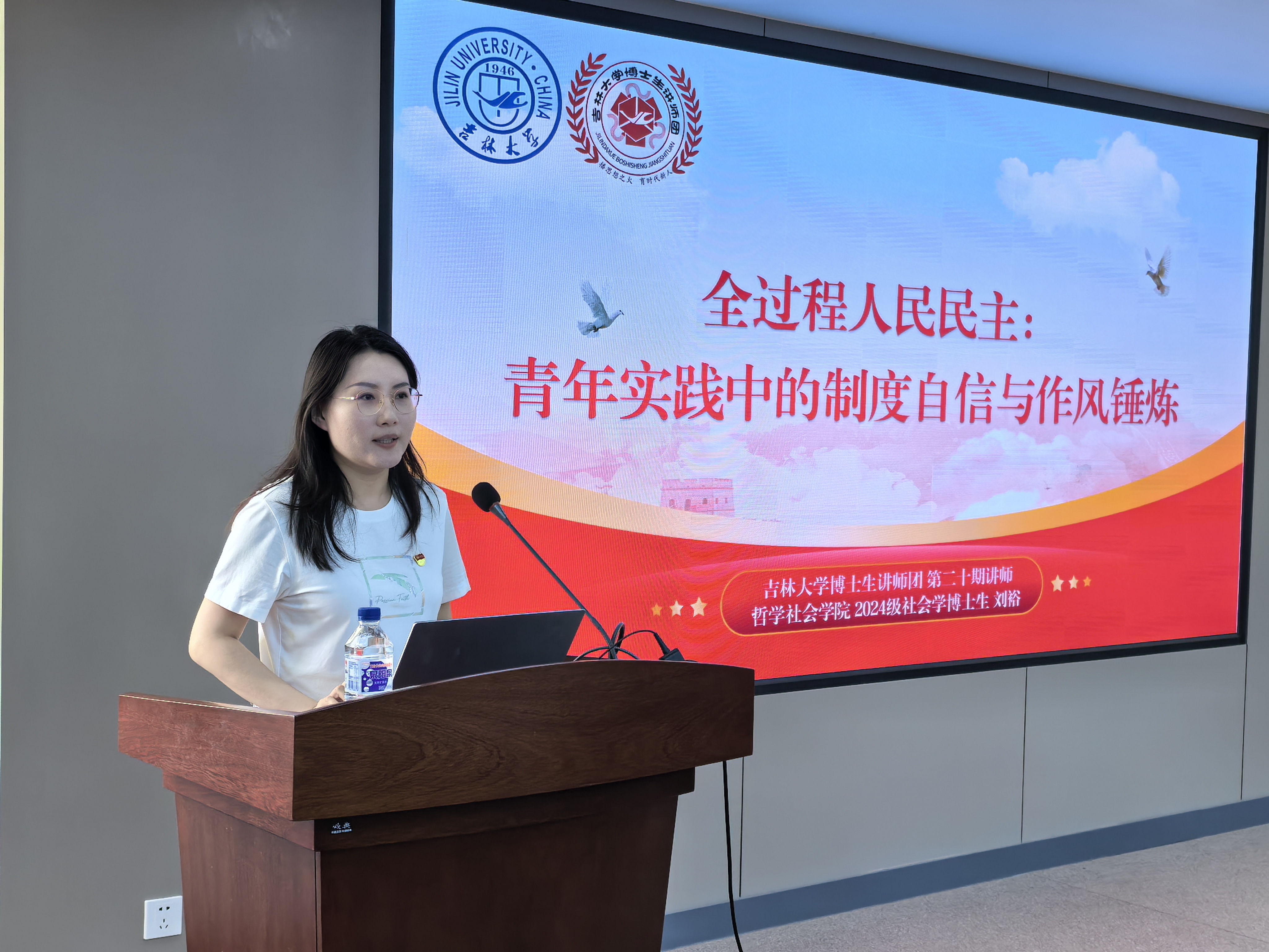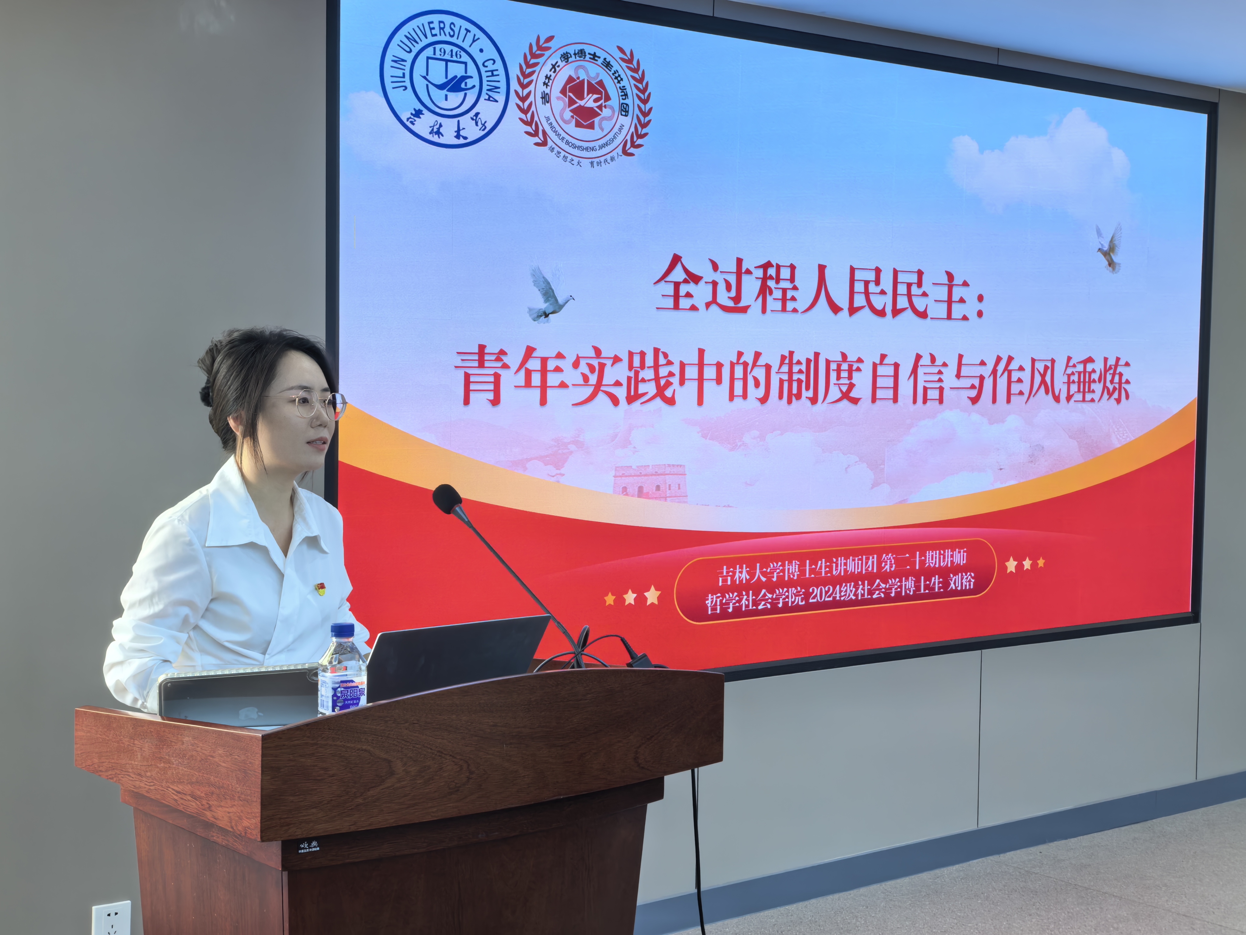为贯彻落实中央八项规定精神,引导青年学子在民主实践中坚定制度自信、锤炼优良作风,2025年6月12日下午14时,哲学社会学院邀请吉林大学博士生讲师团成员、2024级社会学博士研究生刘裕同学,在东荣大厦904会议室举办了题为“全过程人民民主:青年实践中的制度自信与作风锤炼”的主题宣讲。本次宣讲由哲学社会学院辅导员、博士学生第一党支部书记于洋老师主持,全体学生党员参与学习。