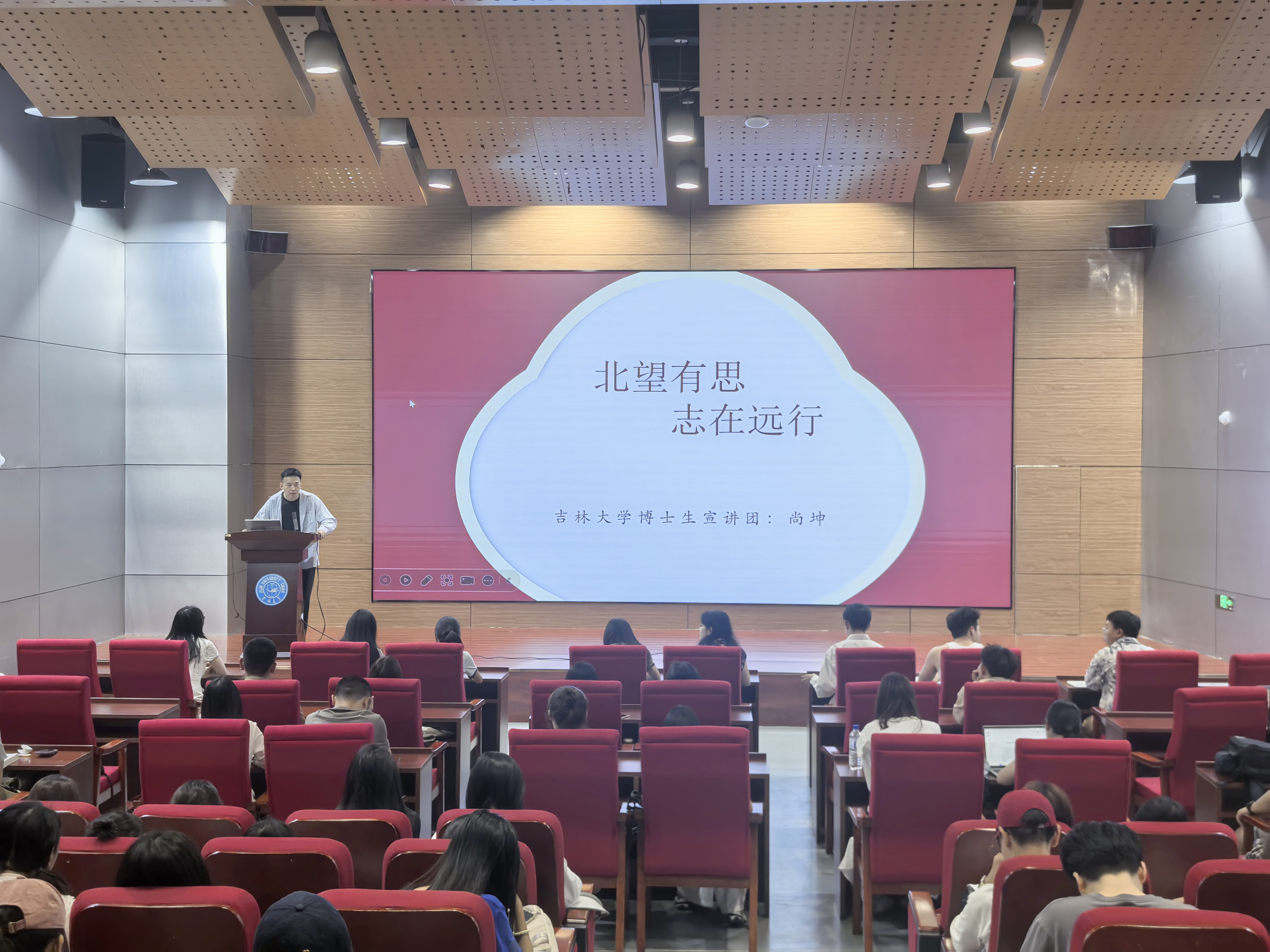 为深入弘扬吉林大学“北上精神”,引导研究生新生厚植爱校荣校情怀、感悟学校红色文化底蕴,2025年9月5日下午,哲学社会学院在国际学术大讲堂举办“北望有思,志在远行”主题讲座。本次讲座由吉林大学博士生讲师团成员尚坤同学主讲,研究生辅导员于洋老师主持,2025级全体硕士新生参加活动。