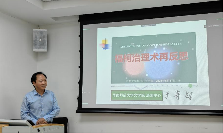 2023年6月17日下午,吉林大学哲学社会学院举办的德法哲学青年学者系列讲座第三讲在东荣大厦915举办。本期讲座由华南师范大学文学院于奇智教授主讲,讲座主题为“福柯治理术再反思”。吉林大学哲学社会学院晋运锋教授、东北师范大学马克思主义学部马军海副教授担任与谈人和评论人,外国哲学教研室郝鸿军主任、盛传捷老师列席本次讲座,吉林大学行政学院朱万润副教授、长春师范大学政法学院安丽霞副教授参与了讲座。讲座由赵雄峰副教授主持。