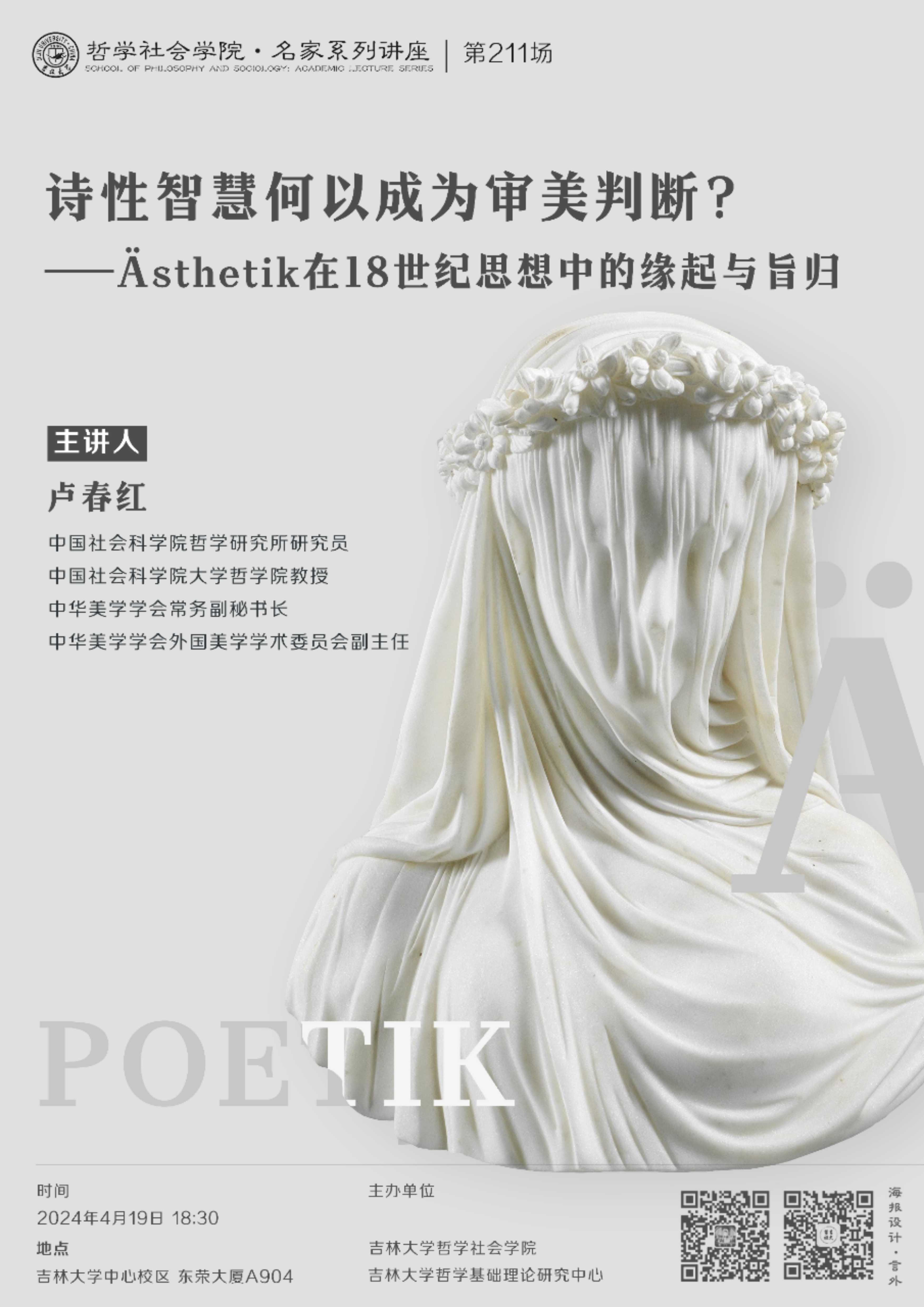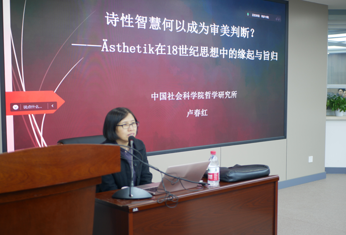 2024年4月19日,我院举办了哲学社会学院名家系列讲座第211场——“诗性智慧何以成为审美判断?——Ästhetik在18世纪思想中的缘起与旨归”,主讲人为中国社会科学院哲学研究所研究员、中国社会科学院大学哲学院博士生导师卢春红教授。讲座由哲学社会学院副院长、美学专业博士生导师李龙教授主持。我院美学专业杨晓老师及本科生、研究生三十余人参加了此次活动。